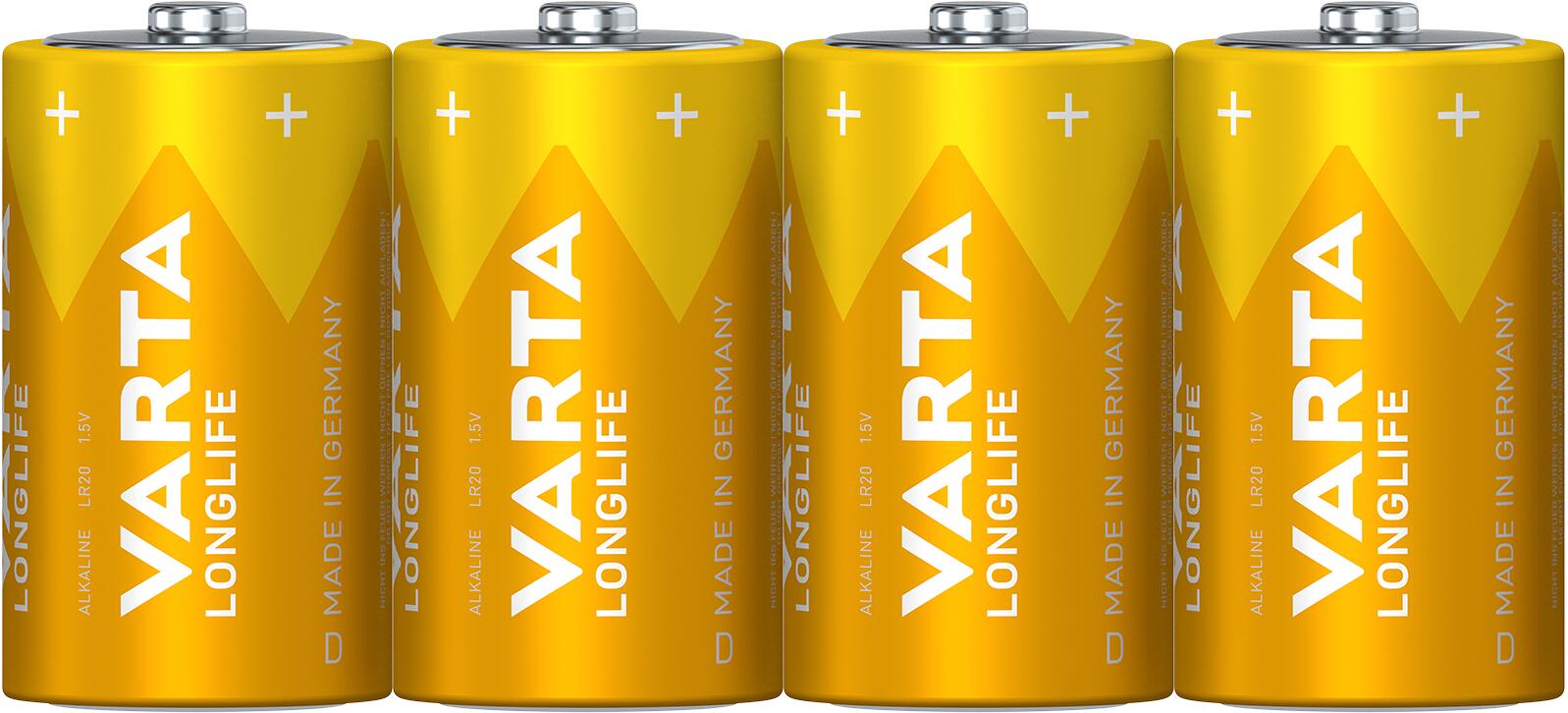 - Lieferumfang: VARTA LONGLIFE Mono (D) Alkaline Batterie, 4 Stück