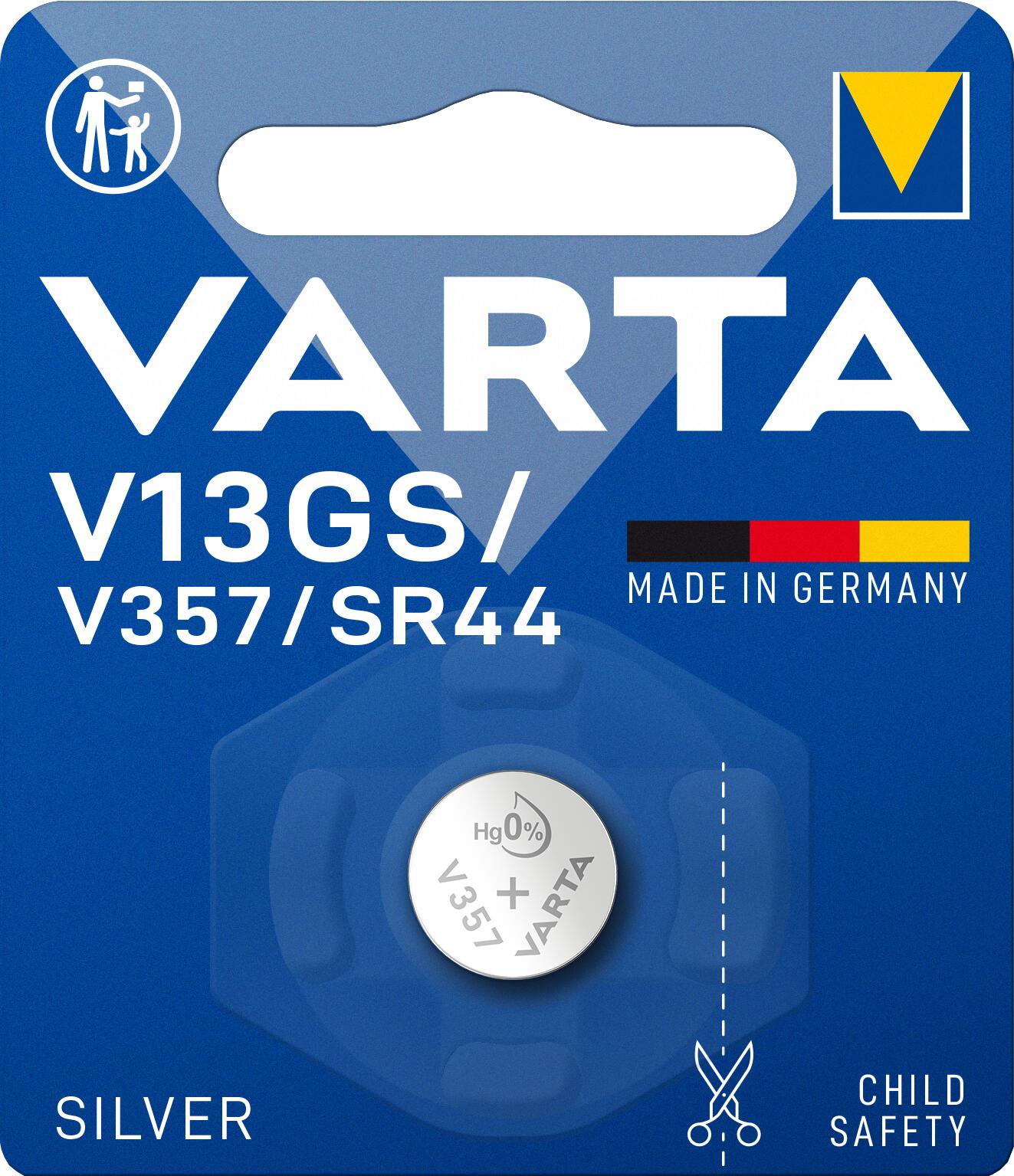 - VARTA SILVER Coin V13GS/V357/SR44 1.55V in einem Blister mit 1 Batterie. Zellengröße: 11,6mm Durchmesser / 5,4mm Höhe