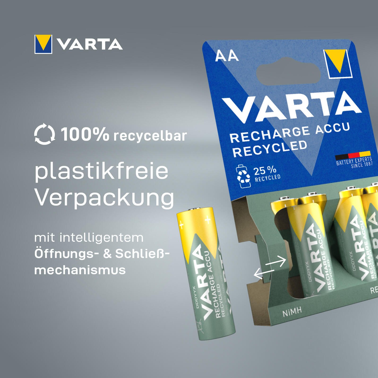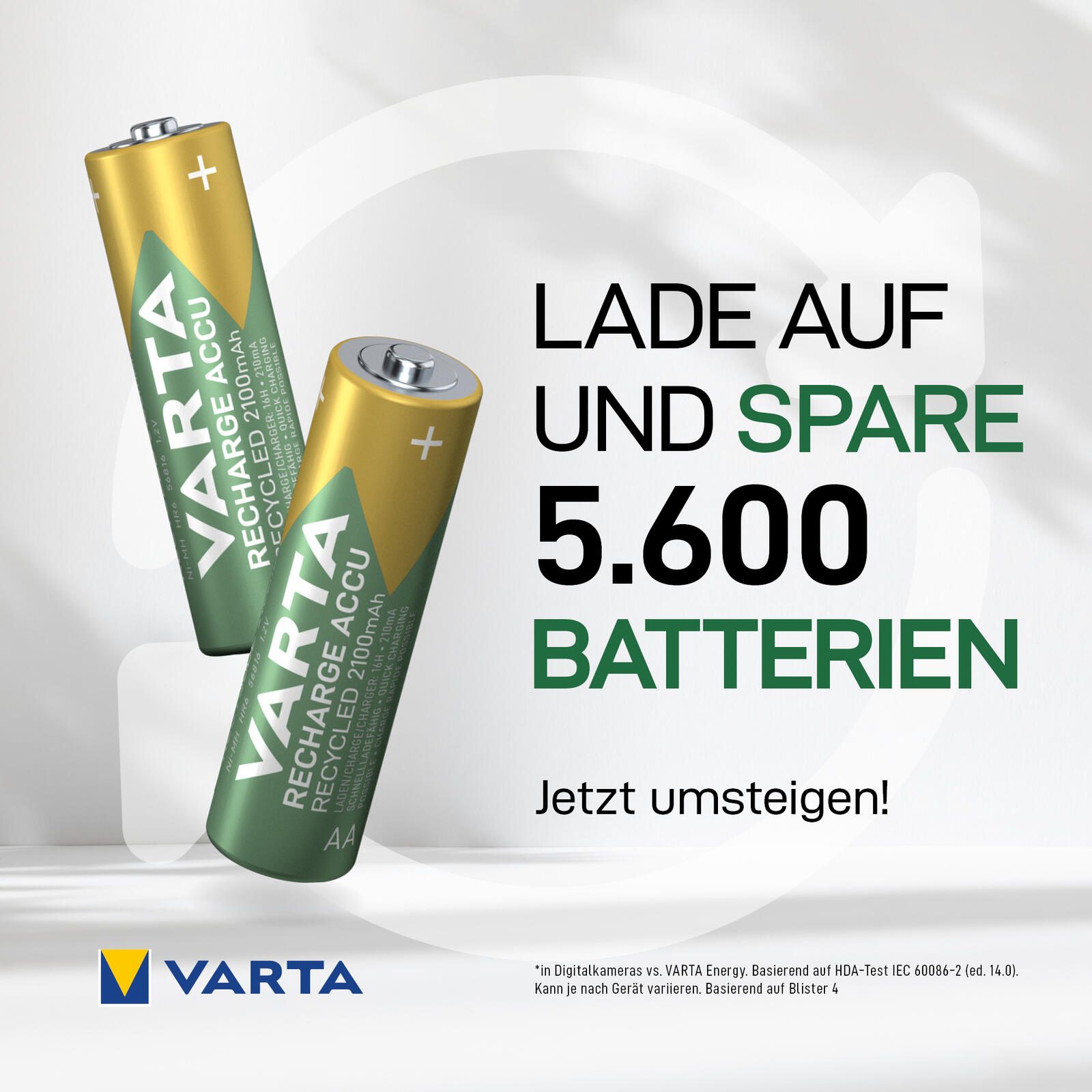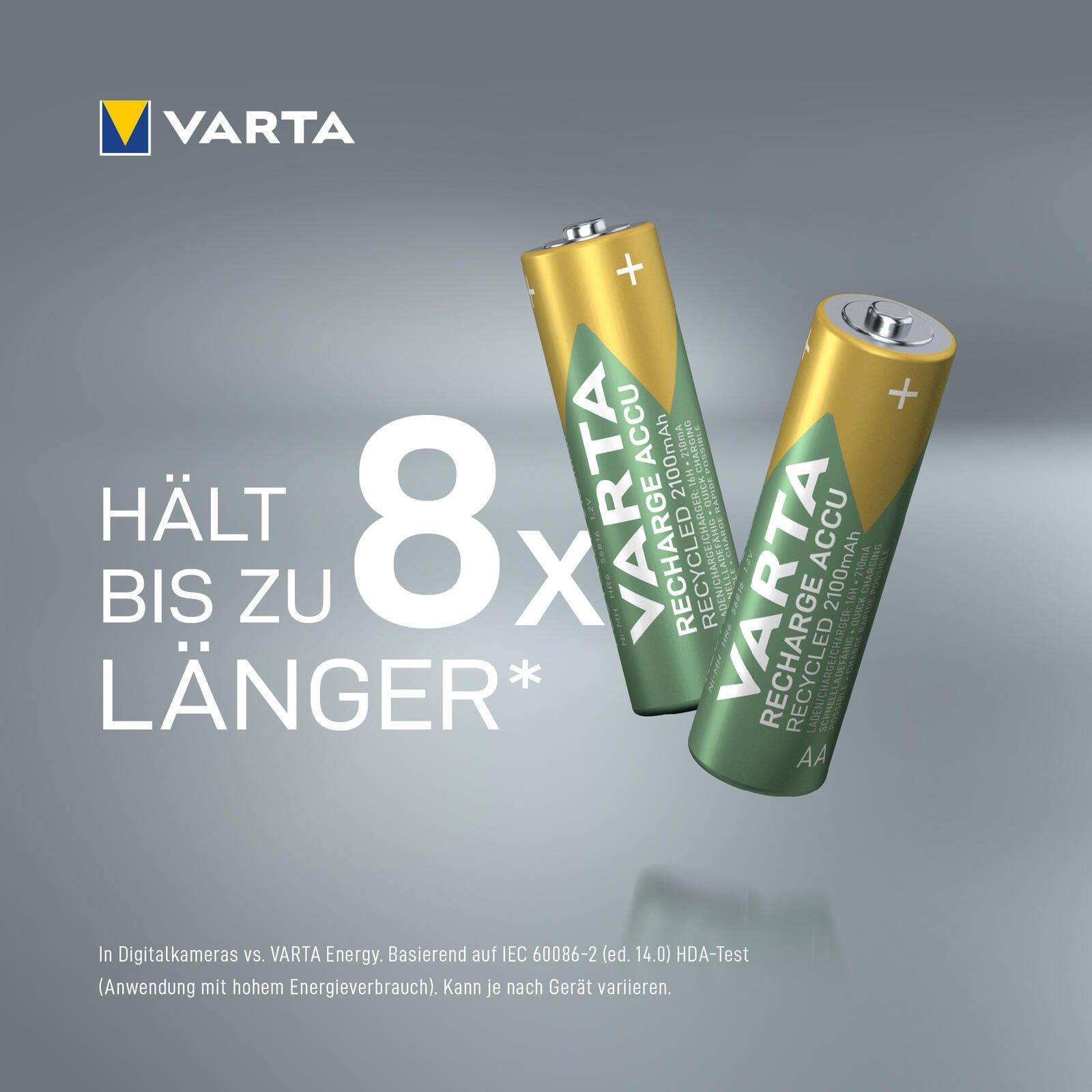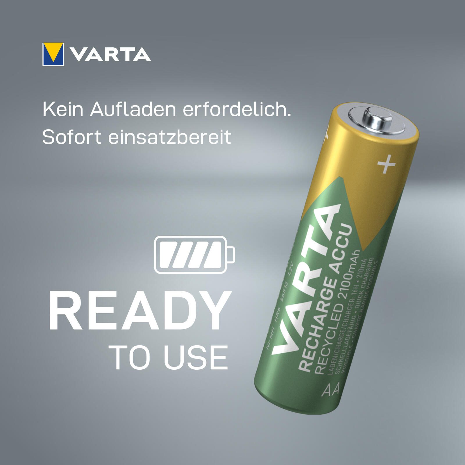 - Lieferumfang: VARTA Recharge Accu Recycled AA 2100mAh 4er Pack