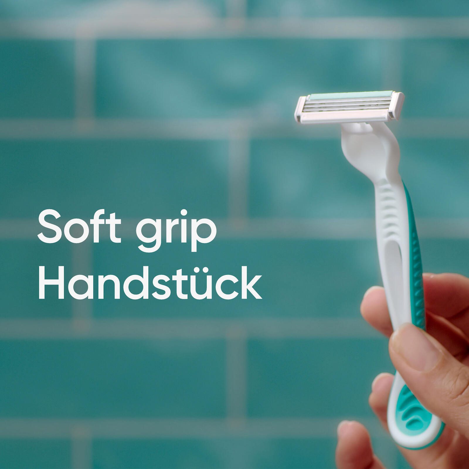 Der Gillette Venus 3 Einwegrasierer bietet dir eine sanfte und gründliche Rasur, die speziell für die Bedürfnisse von Frauen entwickelt wurde. Mit seinem innovativen 3-Klingen-System sorgt dieser Rasierer für eine mühelose Entfernung von Haaren, während die Gleitstreifen für zusätzlichen Komfort und eine geschmeidige Anwendung sorgen. Die Packung enthält drei Rasierer, die ideal für die tägliche Nutzung oder für unterwegs sind. Dank des Soft Grip Handstücks liegt der Rasierer angenehm in der Hand und ermöglicht eine präzise Kontrolle während des Rasierens. Der bewegliche Klingenkopf passt sich den Konturen deines Körpers an und sorgt so für eine gründliche Rasur selbst an schwer erreichbaren Stellen. Die Venus 3 Serie von Gillette ist darauf ausgelegt, die Haut zu schützen und Irritationen zu minimieren. Die Gleitstreifen sind mit feuchtigkeitsspendenden Inhaltsstoffen angereichert, die die Haut während des Rasierens pflegen. Dies macht den Gillette Venus 3 Einwegrasierer zur perfekten Wahl für alle, die Wert auf eine sanfte und effektive Rasur legen. Egal, ob du dich für ein schnelles Rasieren vor der Arbeit oder eine entspannende Rasur in der Badewanne entscheidest, der Gillette Venus 3 Einwegrasierer bietet dir die Flexibilität und Leistung, die du benötigst. Vertraue auf die Qualität von Gillette und genieße das Gefühl von glatter, gepflegter Haut.Technische Daten