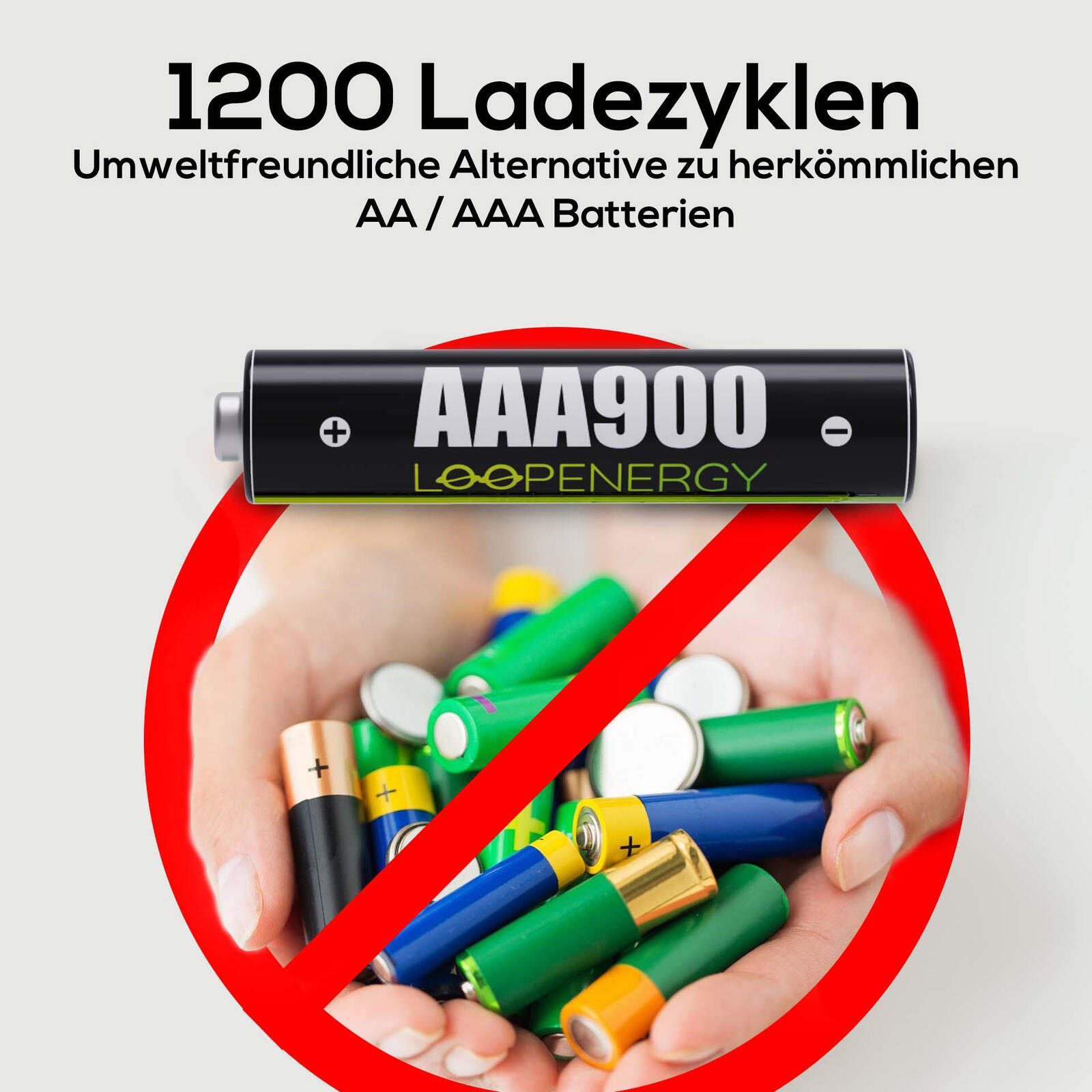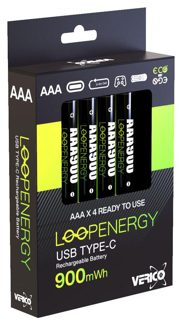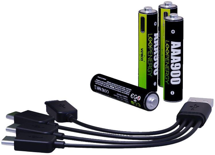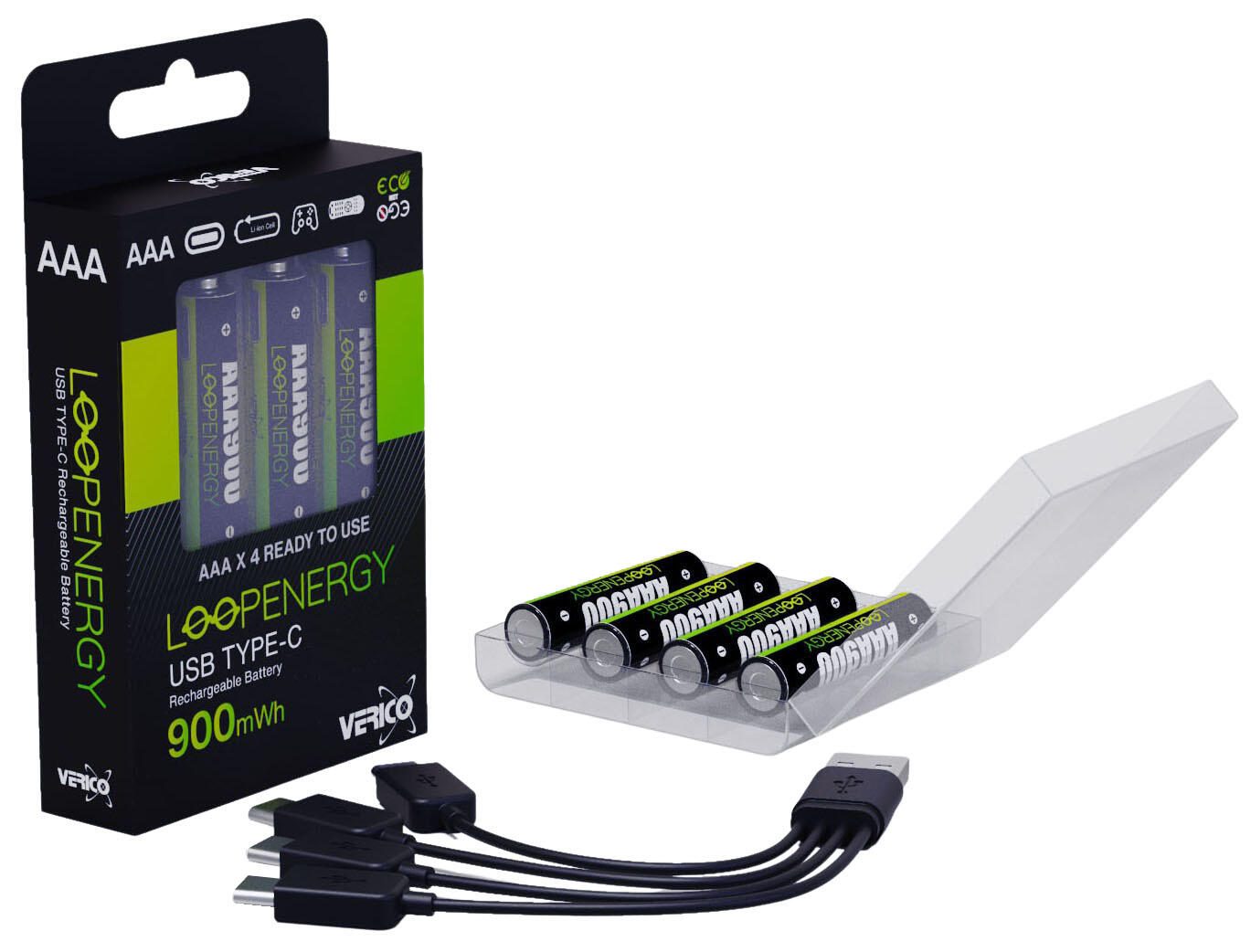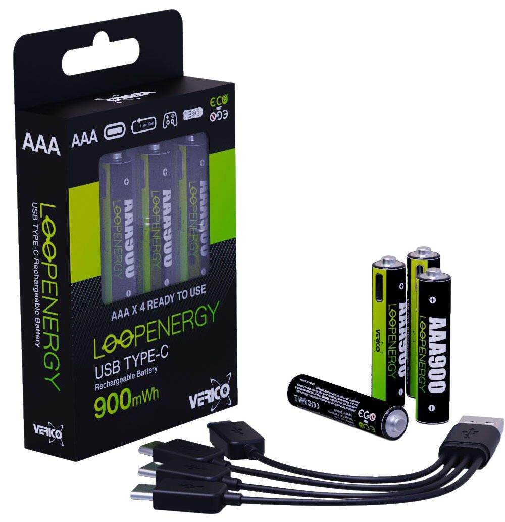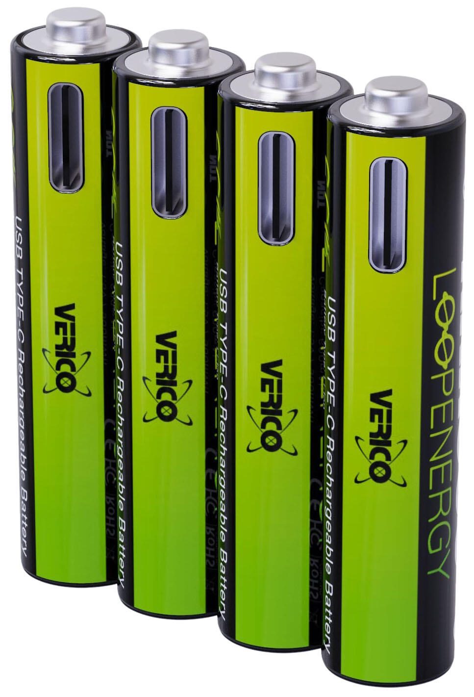 VERICO USB-Akkus mit Ladekabel LoopEnergy AAA900 Li-Ion Micro AAA 600 mAh, 4 St.