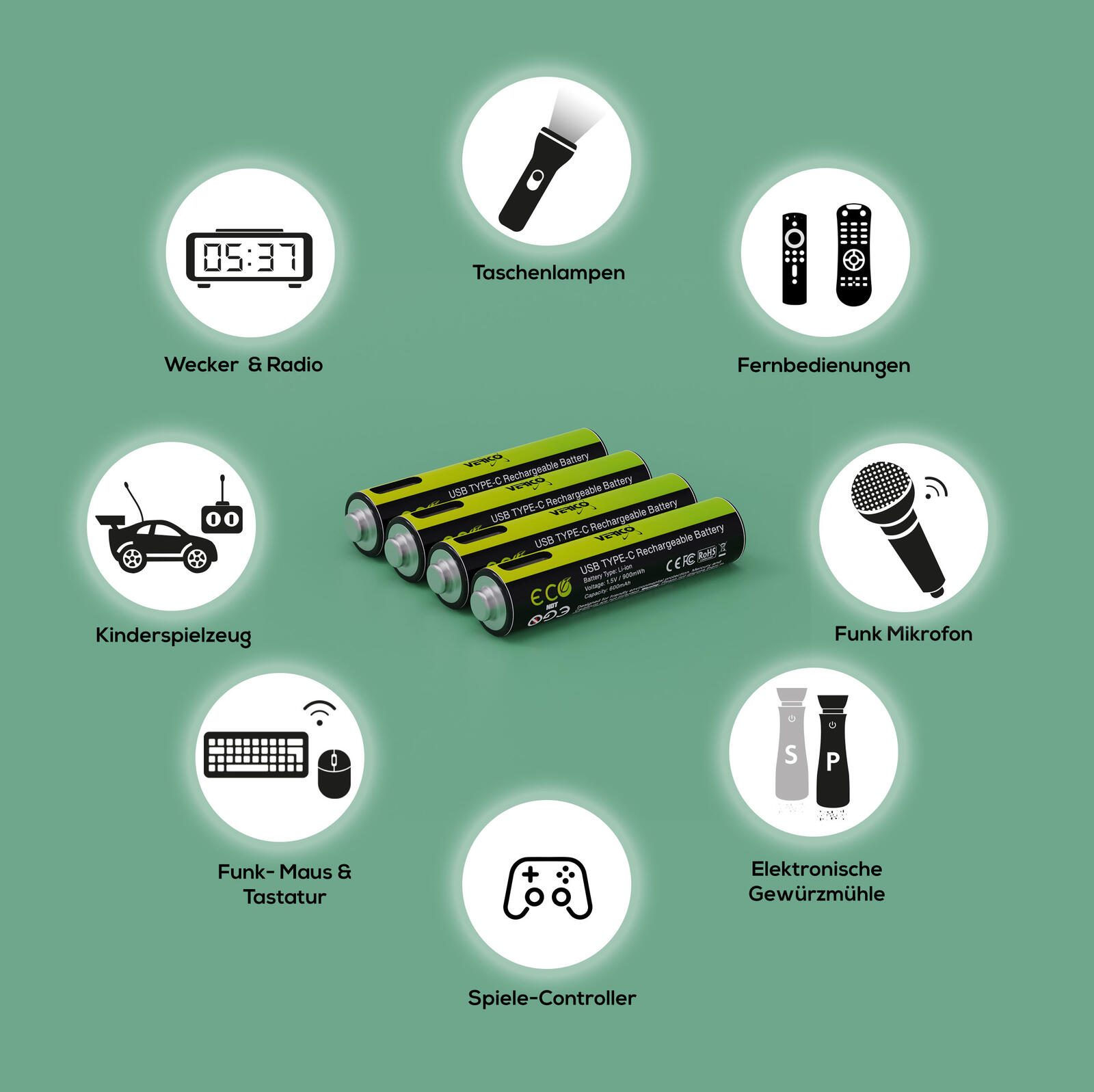 - Batterietyp: Micro AAA, LR 3, LR 03, MN2400, HR3, HR03, FR3
