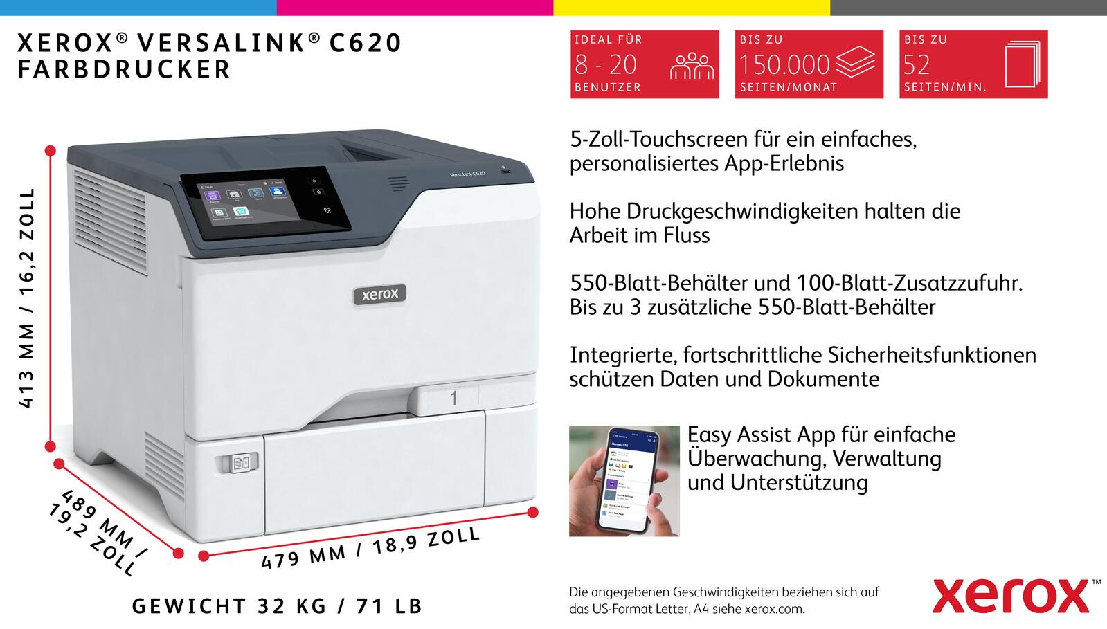 Bis zu 52 Seiten/Min. - Farbe - ANSI A (Letter) (216 x 279 mm)