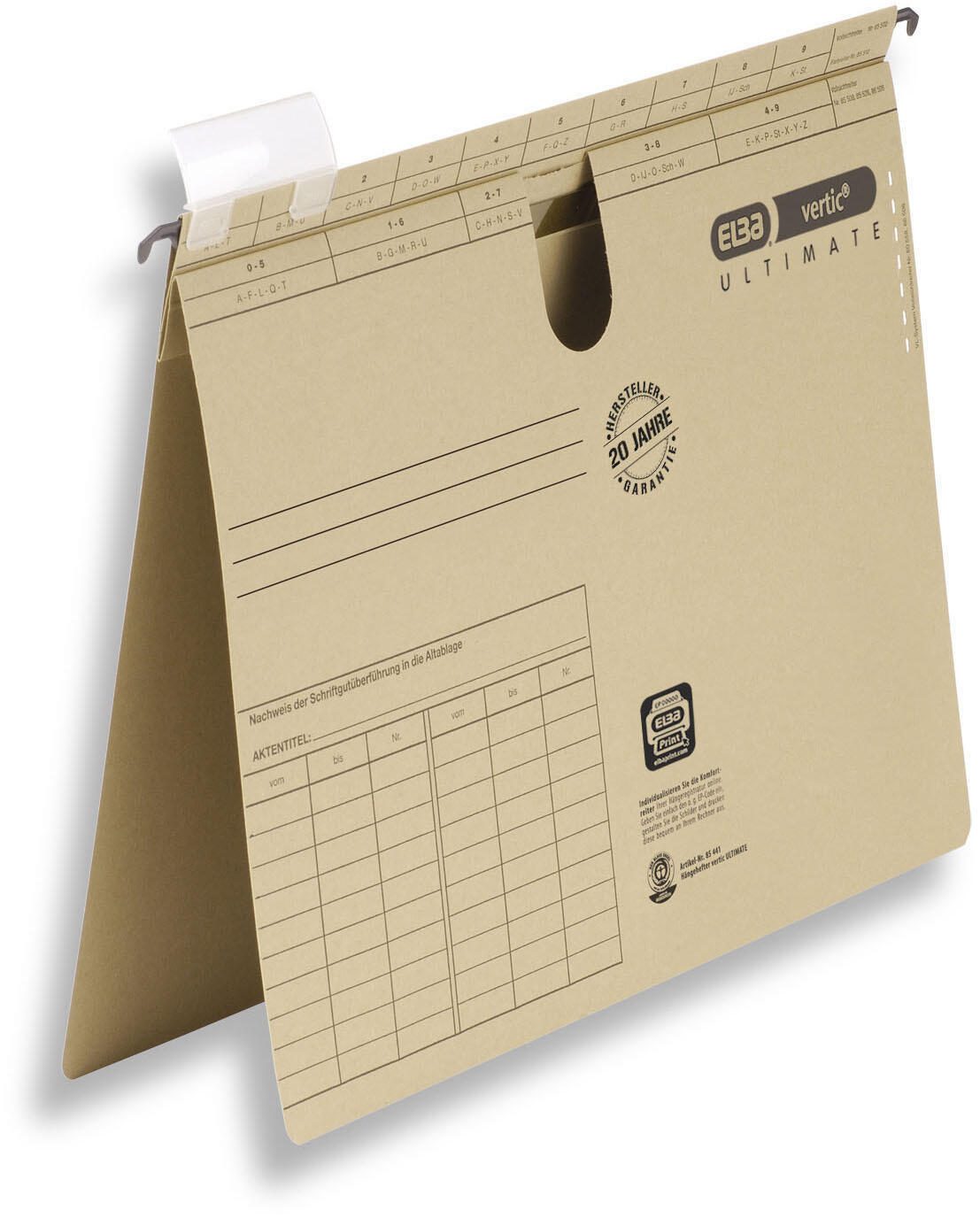 Der ELBA vertic Ultimate Hängehefter in naturbraun ist die ideale Lösung für die ordentliche und sichere Ablage deiner Dokumente im DIN A4 Format. Mit seiner hochwertigen Verarbeitung aus extrastarkem Karton bietet dieser Hängehefter nicht nur eine ansprechende Optik, sondern auch eine bemerkenswerte Stabilität, die für die langfristige Nutzung ausgelegt ist.
