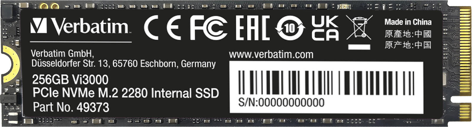 Verbatim Vi3000 M.2 SSD - 256GB