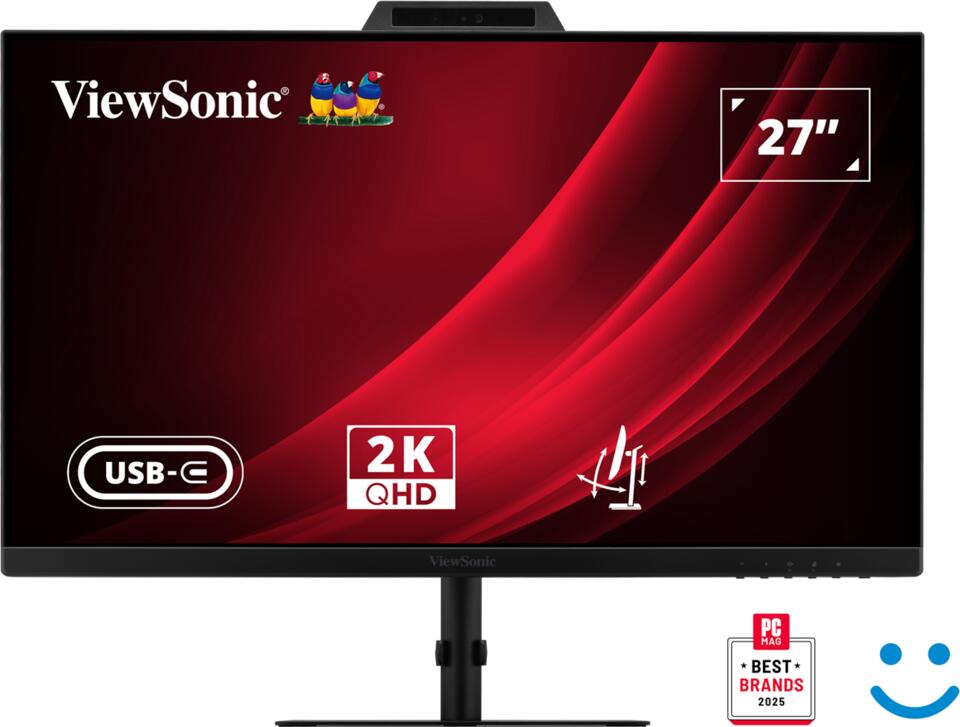 ViewSonic VG2741V-2K Monitor mit Hello-zertifizierter Webcam 68,6 cm (27") Quad HD, IPS, 4 ms, HDMI, DisplayPort, USB-C, USB-A, RJ45, 3,5 mm Klinke