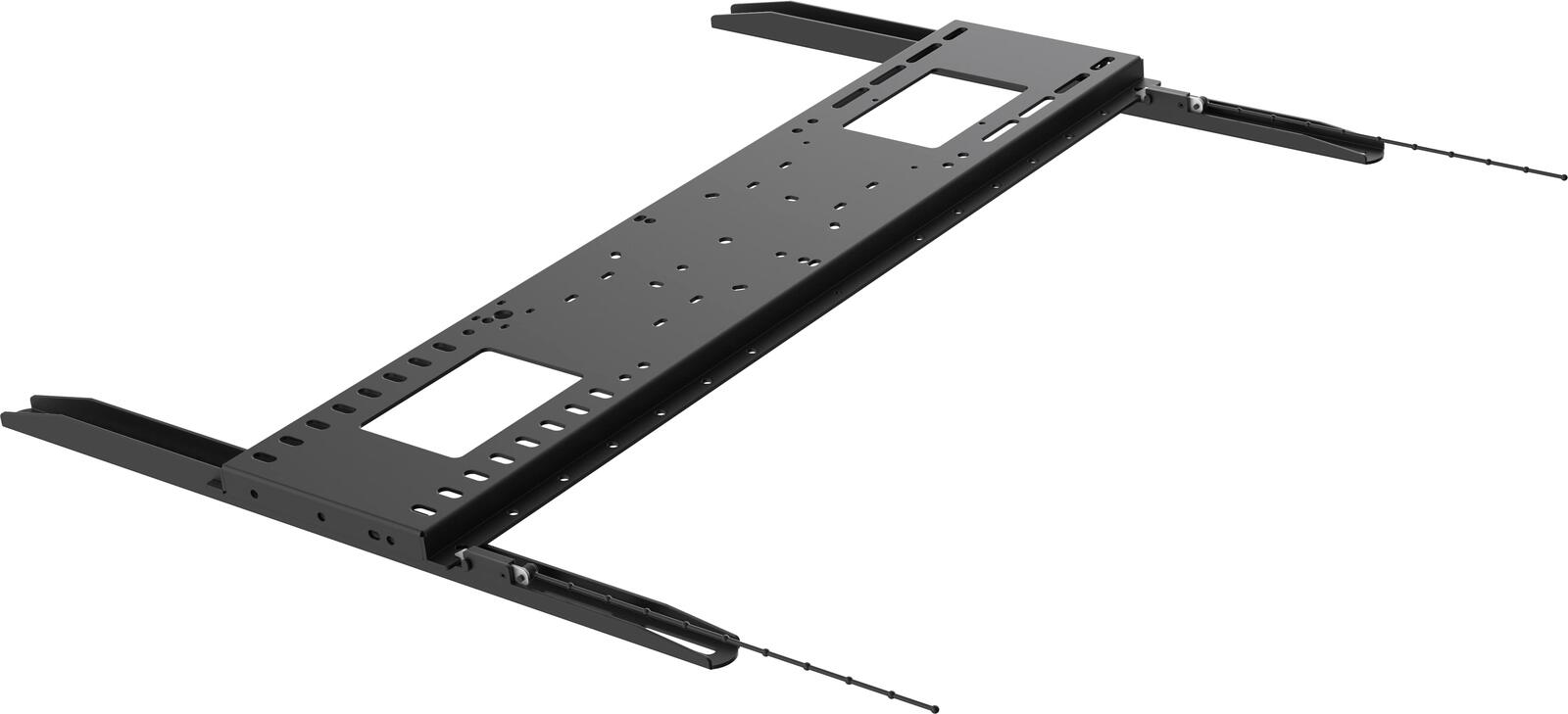 Zwei waagerechte Abschnitte können für eine Videokonferenz mit zwei Displays oder für beengte Räume nebeneinander befestigt werden. Alternativ lässt sich die Waagerechte verlängern, um zwei tragende Punkte in einer Wand zu überbrücken.