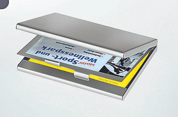 Das hochwertige Aluminiummaterial verleiht dem Etui nicht nur eine edle Optik, sondern sorgt auch für eine robuste und langlebige Hülle für deine Visitenkarten. Die matte Oberfläche unterstreicht den professionellen Look und schützt die Karten vor Kratzern und Verschmutzung.