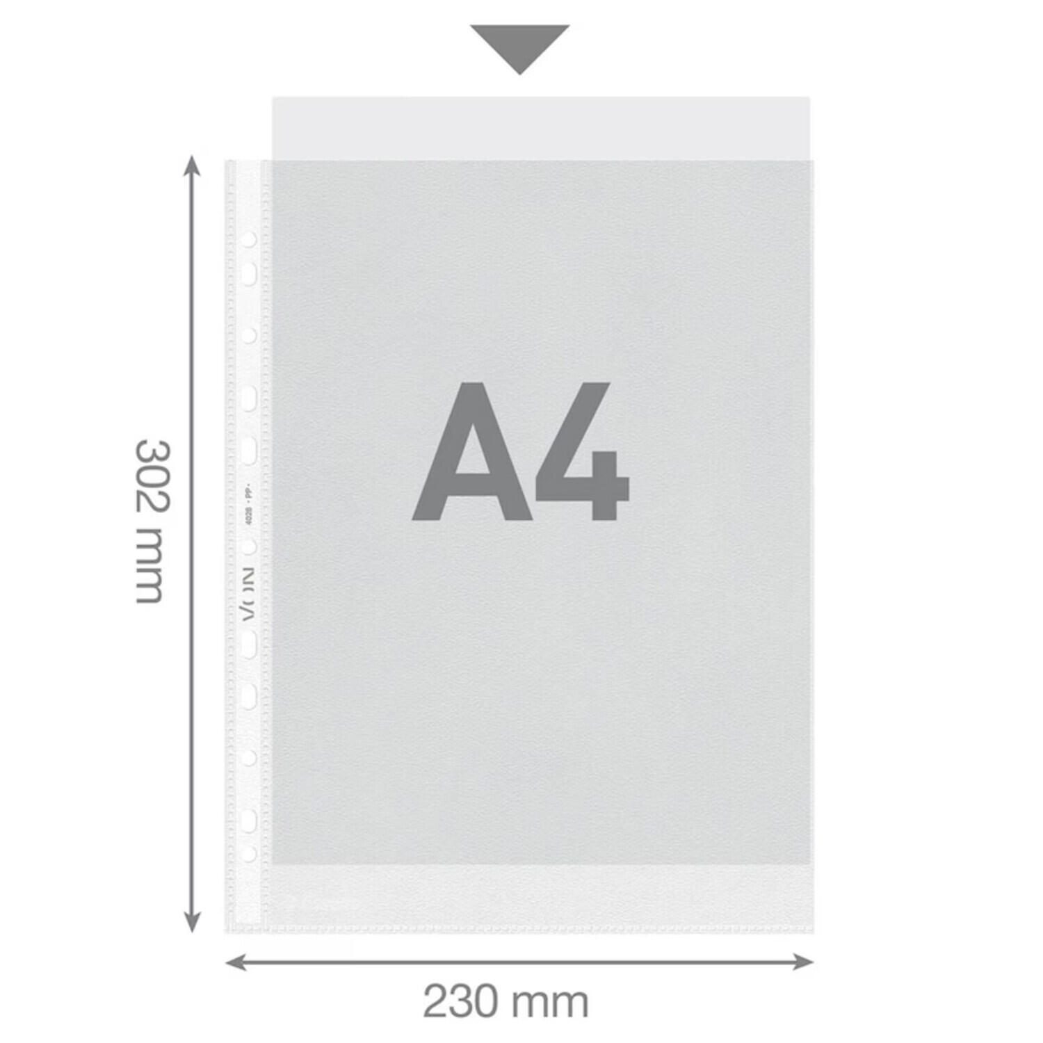 Die Prospekthüllen verfügen über eine praktische Öffnung, die das Einlegen und Herausnehmen von Dokumenten erleichtert. Zudem sind sie zum Abheften vorbereitet und besitzen eine Lochung, die eine einfache Integration in Ordnersysteme ermöglicht. Die genarbte Oberfläche schützt die Dokumente vor Kratzern und verleiht den Hüllen eine angenehme Haptik.