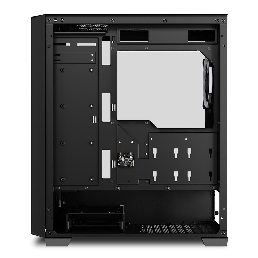 Wer Leistung sowohl gerne auf dem Monitor als auch unter dem Schreibtisch zeigt, findet im VS8 RGB ATX Midi Tower das ideale Gehäuse für alle Anwendungszwecke. Mit Platz für insgesamt sechs Lüfter oder gleich zwei Radiatoren sowie der geeigneten Ausstellungsfläche hinter gehärtetem Glas, eignet es sich trotz kompakter Abmessungen für anspruchsvolle Hardware. Dank eines cleveren Innenraumdesigns haben auch größere Grafikkarten, CPU-Kühler und Netzteile Platz sowie bis zu sechs 2,5-Zoll-SSDs für tausende Gigabyte an Daten.