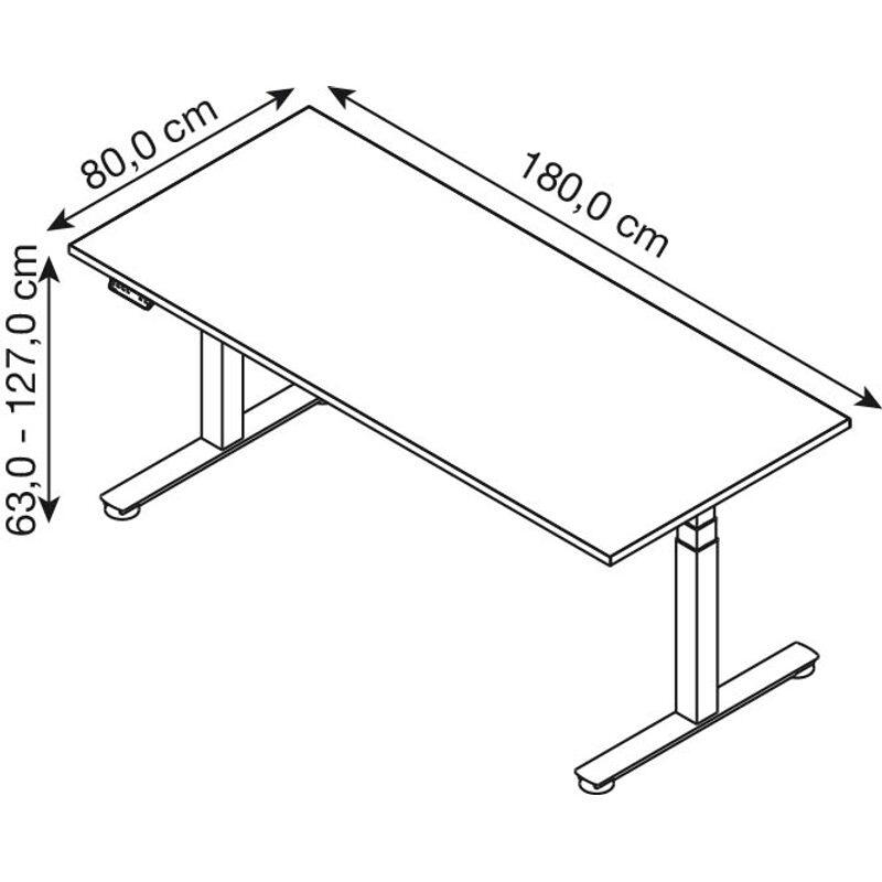 Der HAMMERBACHER elektrisch höhenverstellbare Schreibtisch VXDSM19/E/S in edlem Eichenholz-Design vereint Funktionalität und modernes Design. Mit einer großzügigen Tischplatte aus Spanplatte und einem stabilen Stahlgestell bietet dieser Schreibtisch nicht nur ausreichend Platz für Ihre Arbeitsmaterialien, sondern auch eine robuste Basis für langanhaltende Nutzung. Die elegante Farbgebung in Eiche verleiht Ihrem Büro oder Arbeitszimmer eine warme und einladende Atmosphäre. Die Maße von 180 cm in der Breite, 80 cm in der Tiefe und einer Höhe von 63 cm machen den Schreibtisch zu einem idealen Arbeitsplatz, der sich perfekt in verschiedene Raumkonzepte integrieren lässt. Das T-Fuß-Gestell sorgt für zusätzliche Stabilität und ermöglicht eine einfache Höhenverstellung, sodass Sie Ihre bevorzugte Arbeitshaltung mühelos anpassen können. Diese Funktion fördert nicht nur eine gesunde Körperhaltung, sondern steigert auch Ihre Produktivität und Ihr Wohlbefinden während der Arbeit. Ein weiteres Highlight des VXDSM19 ist die Möglichkeit der Montage des Memoryschalters, der sowohl links als auch rechts angebracht werden kann und sich flexibel nach hinten verschieben lässt. So können Sie den Schreibtisch individuell an Ihre Bedürfnisse anpassen. Der silberne Rahmen aus Metall ergänzt das Gesamtbild und sorgt für einen modernen Look. Dieser elektrisch höhenverstellbare Schreibtisch ist die perfekte Wahl für alle, die Wert auf Ergonomie und Stil legen. Ob im Home Office oder im professionellen Arbeitsumfeld, der HAMMERBACHER VXDSM19 bietet Ihnen die Flexibilität, die Sie benötigen, um effizient und komfortabel zu arbeiten.
