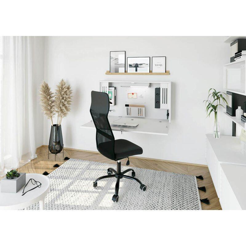 Der HAMMERBACHER Wandschreibtisch VWO12/W/W in elegantem Weiß vereint Funktionalität und modernes Design. Hergestellt aus hochwertiger Spanplatte, bietet dieser Wandschreibtisch eine stabile und langlebige Arbeitsfläche, die sich ideal für verschiedene Anwendungen eignet. Mit den kompakten Maßen von 120 cm in der Breite, 24 cm in der Tiefe und 65 cm in der Höhe passt er perfekt in jedes Home-Office oder Arbeitszimmer, ohne dabei zu viel Platz in Anspruch zu nehmen. Ein besonderes Highlight des Wandschreibtisches ist die integrierte LED-Leuchte, die für eine optimale Ausleuchtung sorgt und somit das Arbeiten auch bei schwachem Licht angenehm gestaltet. Die Klappe des Schreibtisches ist abschließbar, was zusätzliche Sicherheit für Ihre Unterlagen und persönlichen Gegenstände bietet. Das schlichte, weiße Design des Wandschreibtisches fügt sich harmonisch in jede Raumgestaltung ein und verleiht Ihrem Arbeitsbereich eine frische und aufgeräumte Atmosphäre. Der hängende Aufbau sorgt nicht nur für ein modernes Erscheinungsbild, sondern ermöglicht auch eine einfache Reinigung des Fußbodens unter dem Tisch. Der HAMMERBACHER Wandschreibtisch VWO12/W/W ist die perfekte Lösung für alle, die einen praktischen und stilvollen Arbeitsplatz suchen. Ob für das Home-Office, das Kinderzimmer oder als zusätzlicher Arbeitsplatz in der Wohnung – dieser Schreibtisch überzeugt durch seine durchdachte Konstruktion und ansprechende Optik. Genießen Sie die Vorteile eines gut organisierten und ansprechenden Arbeitsbereichs mit diesem hochwertigen Wandschreibtisch.Technische Daten