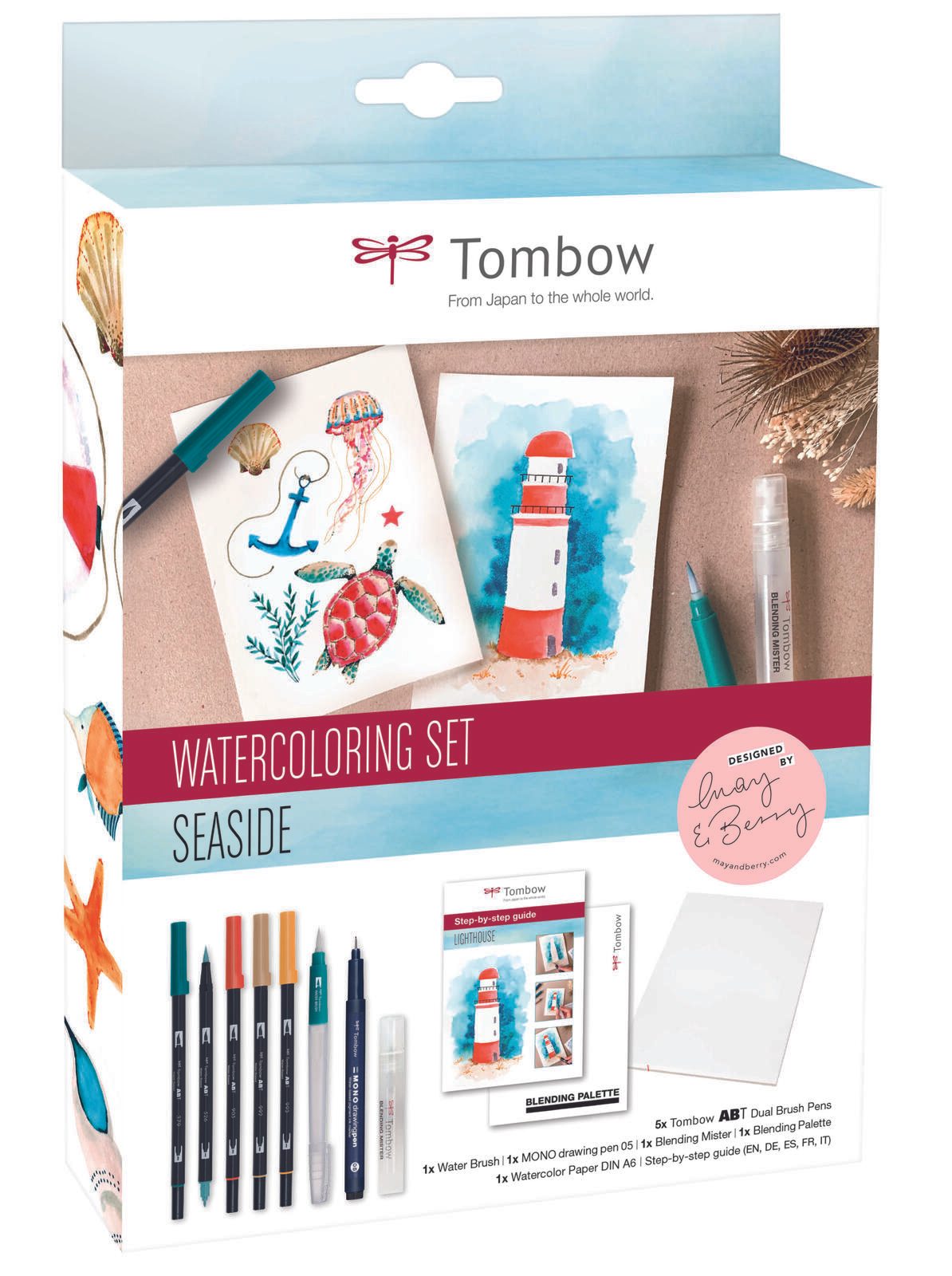 Das Watercoloring Set Seaside wird von Tombow hergestellt, einem renommierten Unternehmen in der Welt der Kunstbedarfhersteller. Die hochwertige Verpackung im Karton-Etui sorgt dafür, dass du deine Materialien sicher aufbewahren und transportieren kannst.