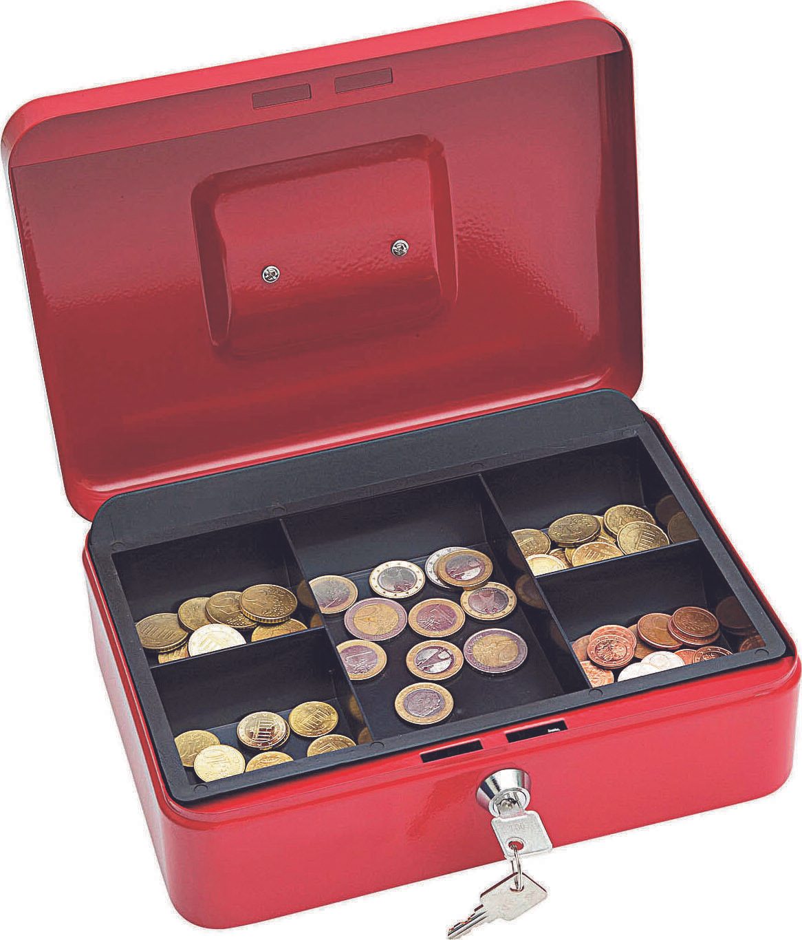 Ein herausnehmbarer Einsatz sorgt für zusätzliche Flexibilität und Ordnung in der Geldkassette. Du kannst deine Münzen und Scheine daher übersichtlich und sicher aufbewahren. Der integrierte Tragegriff ermöglicht es dir, die Kassette bequem und einfach zu transportieren, egal ob zu Hause, im Büro oder unterwegs.