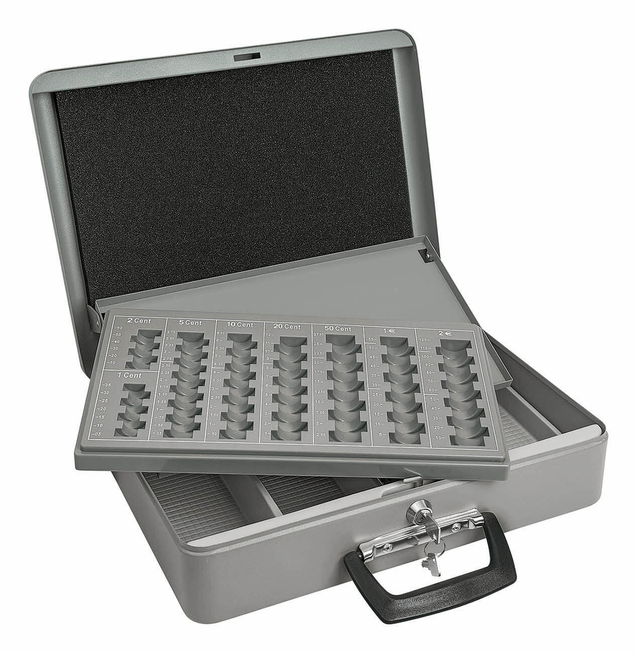 Dank des herausnehmbaren Einsatzes und des Münzzählbretts behältst du stets den Überblick über dein Geld. Die Maße von 37,0 x 29,0 x 11,0 cm bieten ausreichend Platz für Scheine, Münzen und andere Wertsachen. Der Tragegriff sorgt dafür, dass du die Geldkassette bequem transportieren kannst.
