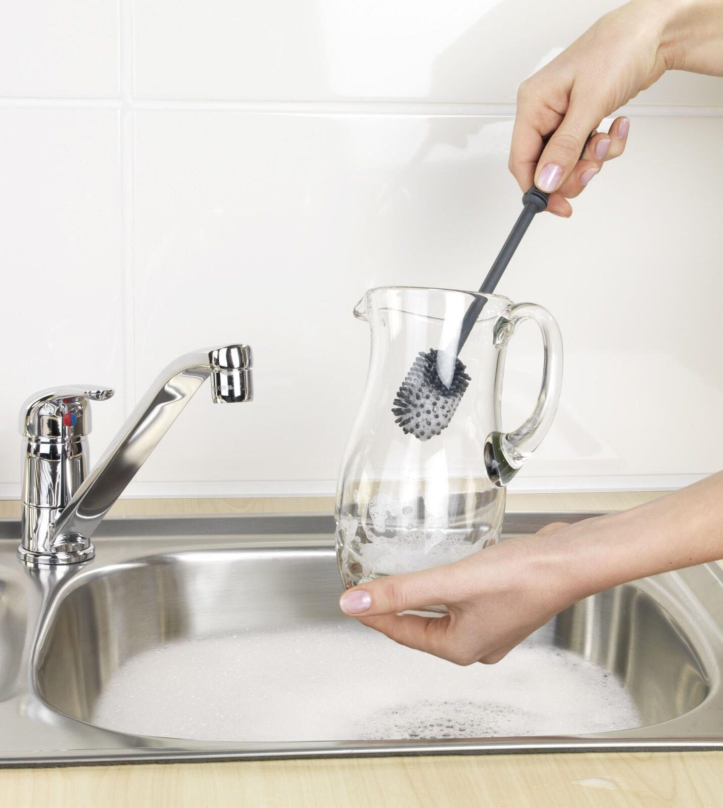 Die WENKO Spülbürste in Grau überzeugt nicht nur durch ihr stilvolles Design, sondern auch durch ihre hochwertigen Materialien und praktischen Eigenschaften. Mit einer Länge von 4 cm ist sie handlich und einfach zu verwenden. Hergestellt aus strapazierfähigem Silikon, ist sie langlebig und leicht zu reinigen. Sowohl das Material der Bürste als auch der Borsten besteht aus Silikon, was sie besonders hygienisch macht.