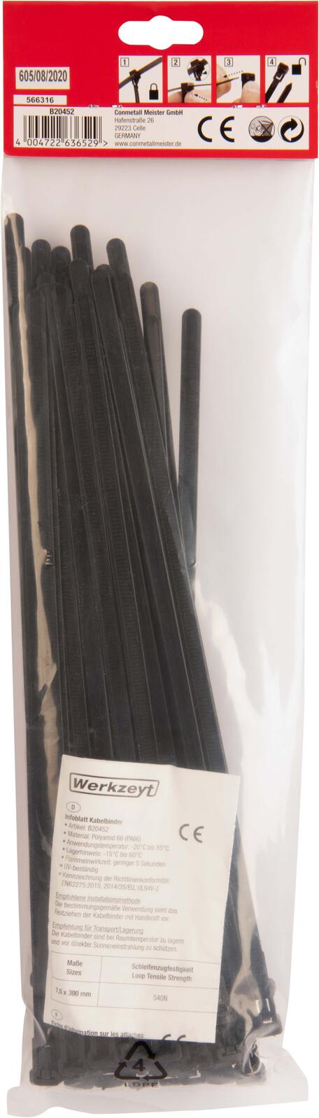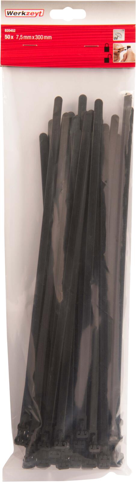 Werkzeyt Kabelbinder schwarz 300,0 mm x 7,5 mm 1 Pack = 50 St.