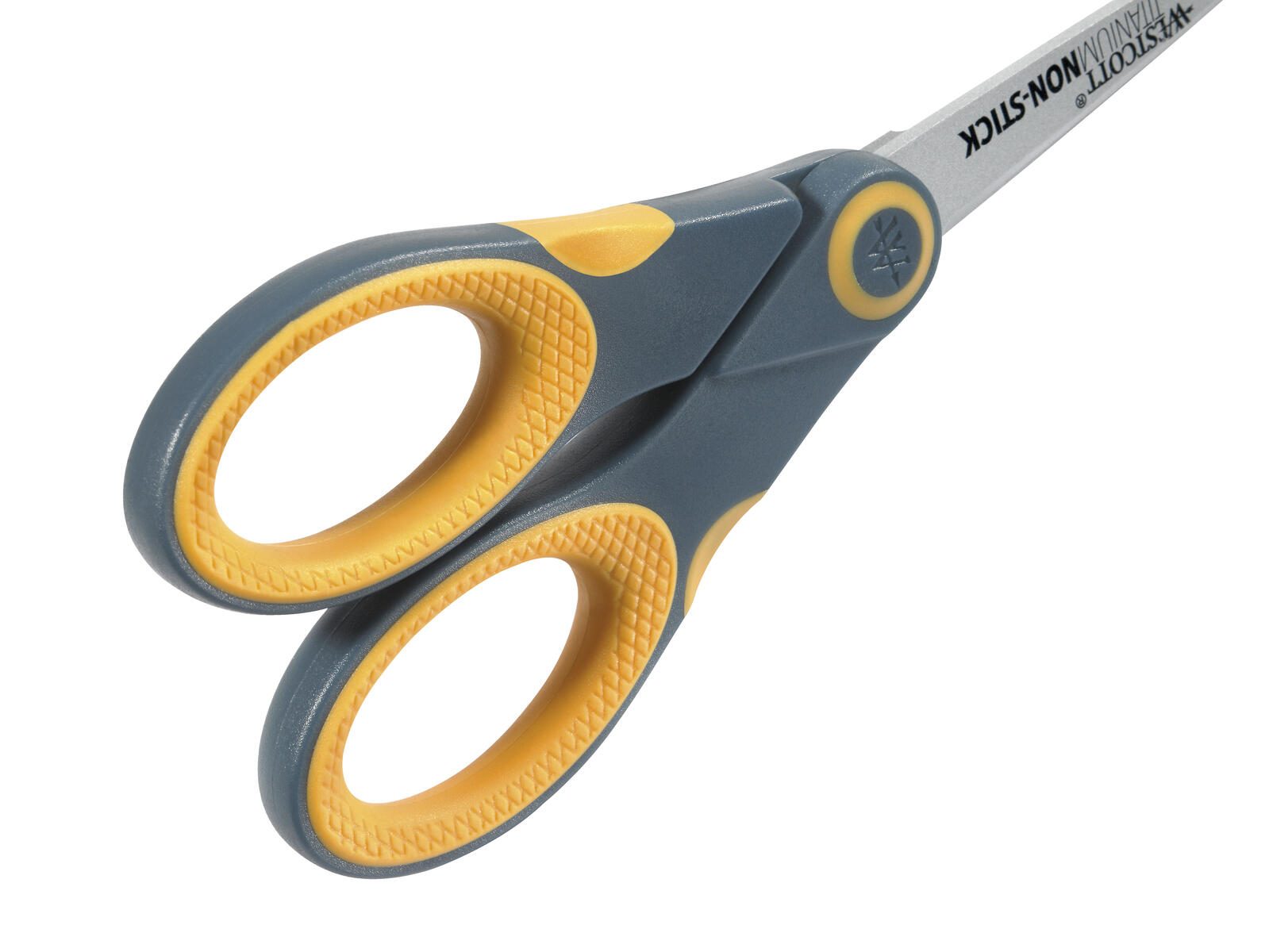 Die WESTCOTT Schere 12.7 cm ist die ideale Wahl für alle, die eine zuverlässige und hochwertige Schere für den täglichen Gebrauch suchen. Mit ihrem eleganten grau-gelben Design und der spitzen Form ermöglicht sie präzise Schnitte in verschiedenen Materialien. Diese Haushaltsschere ist nicht nur funktional, sondern auch ein stilvolles Werkzeug in deinem Zuhause. Die Klinge der WESTCOTT Schere besteht aus robustem Stahl, was eine lange Lebensdauer und hohe Schneidleistung garantiert. Dank der speziellen TITANIUM NON STICK-Beschichtung bleibt die Klinge auch bei intensiver Nutzung scharf und widerstandsfähig gegen Anhaftungen, wodurch das Schneiden von stärkeren Materialien zum Kinderspiel wird. Der ergonomisch gestaltete Griff aus Kunststoff sorgt für eine bequeme Handhabung, sodass du auch bei längeren Arbeiten keine Ermüdung verspürst. Mit einer Länge von 12.7 cm ist diese Schere kompakt genug, um sie überall hin mitzunehmen, sei es ins Büro, in die Schule oder einfach nur in den Haushalt. Ihre Vielseitigkeit macht sie zu einem unverzichtbaren Hilfsmittel für Bastelprojekte, Büroarbeiten oder alltägliche Aufgaben. Die WESTCOTT Schere 12.7 cm ist somit nicht nur praktisch, sondern auch ein zuverlässiger Partner für kreative Ideen und handwerkliche Tätigkeiten. Wenn du auf der Suche nach einer Schere bist, die sowohl in der Funktionalität als auch im Design überzeugt, ist die WESTCOTT Schere 12.7 cm die perfekte Wahl. Sie vereint hochwertige Materialien und eine durchdachte Bauweise, um dir das Schneiden zu erleichtern und gleichzeitig ein ansprechendes Aussehen zu bieten.Technische Daten