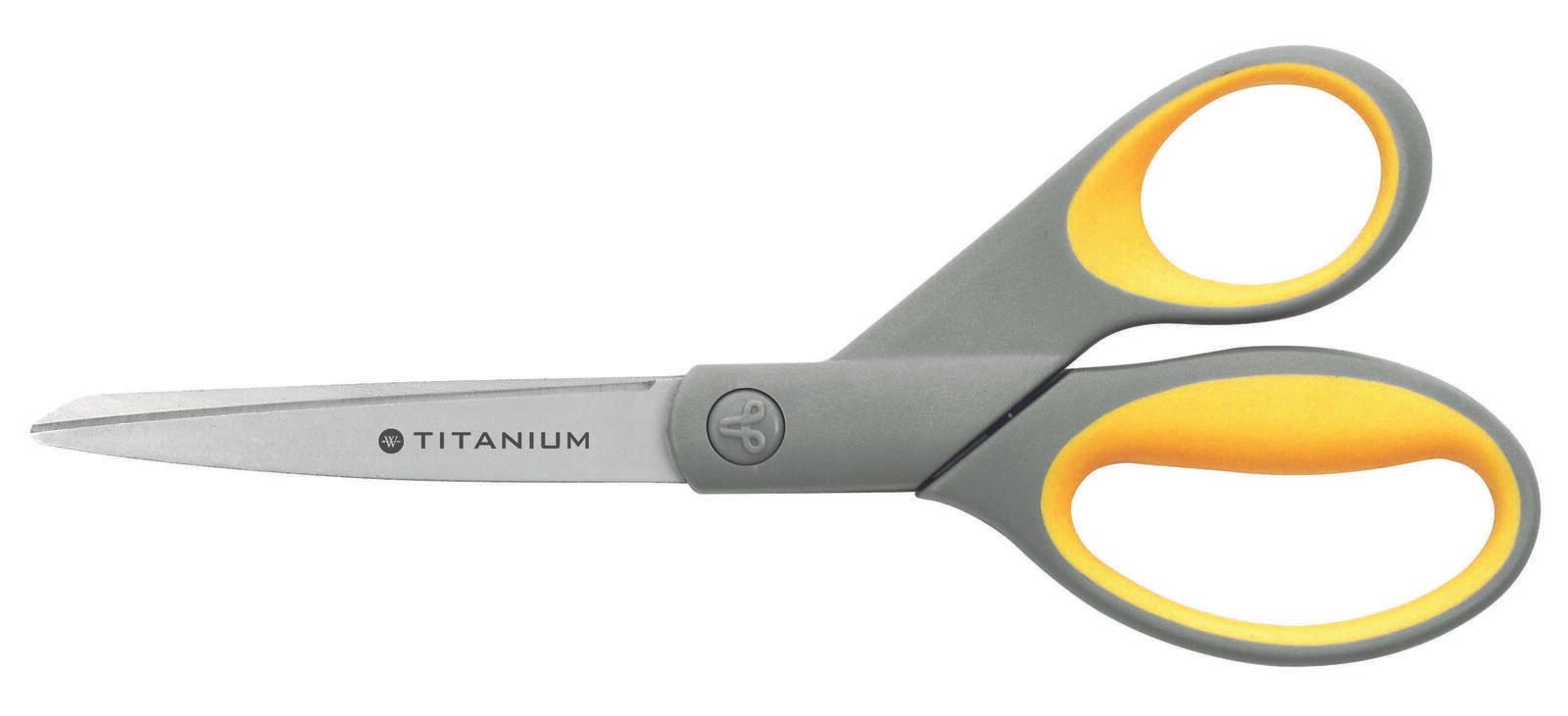 Die WESTCOTT Papierschere 21 cm ist ein unverzichtbares Werkzeug für alle, die Wert auf Präzision und Qualität legen. Diese hochwertige Schere gehört zur Modellreihe der Büroscheren und überzeugt durch ihr elegantes Design in grau-gelb. Mit einer Länge von 21 cm ist sie ideal für verschiedene Anwendungen, sei es im Büro, in der Schule oder zu Hause. Die Klinge der WESTCOTT Papierschere besteht aus robustem Stahl, was für eine langanhaltende Schärfe und eine exakte Schnittführung sorgt. Dadurch wird ein sehr angenehmes und präzises Arbeiten ermöglicht, egal ob du Papier, Karton oder andere Materialien schneiden möchtest. Die spitze Form der Schere erleichtert das Arbeiten auch an schwer zugänglichen Stellen und sorgt für saubere Schnittkanten. Der Griff der Schere ist aus hochwertigem Kunststoff gefertigt, was nicht nur für ein angenehmes Handling sorgt, sondern auch die Ergonomie beim Schneiden unterstützt. Dies macht die Schere besonders benutzerfreundlich, selbst bei längeren Schneidarbeiten. Die Kombination aus einem komfortablen Griff und einer scharfen Klinge macht die WESTCOTT Papierschere zu einem idealen Begleiter für kreative Projekte und Büroarbeiten. Die Serienbezeichnung "TITANIUM Super" steht für die hohe Qualität und Langlebigkeit dieses Produkts, das dir nicht nur im Alltag, sondern auch bei speziellen Bastelprojekten treue Dienste leisten wird. Die WESTCOTT Papierschere 21 cm ist die perfekte Wahl für alle, die Wert auf Funktionalität und Design legen.Technische Daten