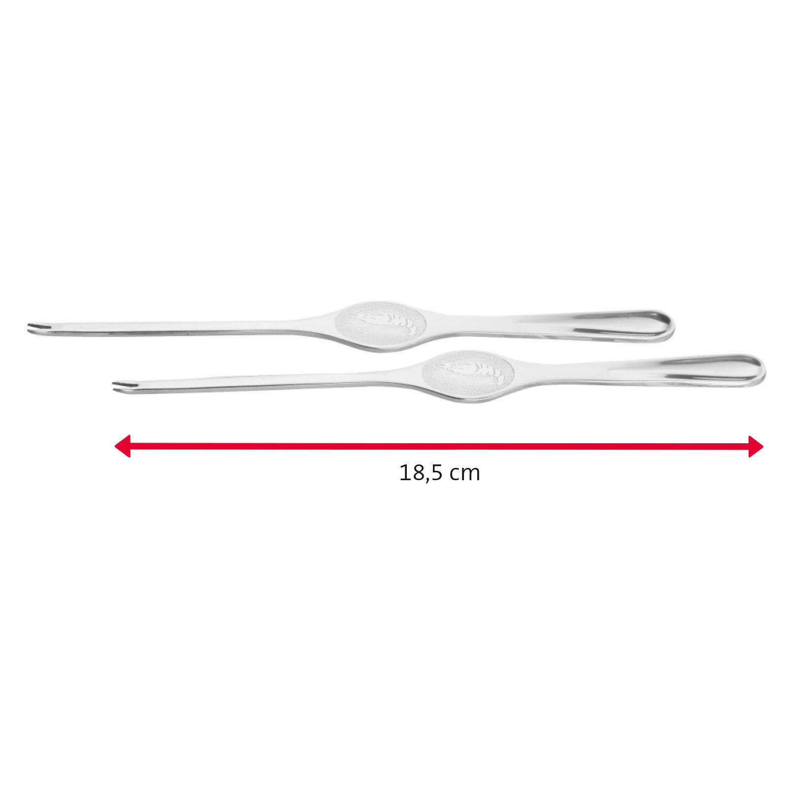 Die WESTMARK Hummergabeln aus hochwertigem Edelstahl sind die perfekte Ergänzung für jedes Meeresfrüchte-Liebhaber-Set. Mit ihrer eleganten silbernen Farbe und dem zeitlosen Design fügen sie sich nahtlos in jede Tischdekoration ein und bringen einen Hauch von Raffinesse zu deinem Essen. Diese Gabeln sind nicht nur ein stilvolles Accessoire, sondern auch äußerst funktional. Die rostfreien Eigenschaften der Edelstahl-Hummergabeln garantieren eine lange Lebensdauer und machen sie zu einem zuverlässigen Werkzeug bei der Zubereitung und dem Genuss von Hummer und anderen Meeresfrüchten. Du kannst dir sicher sein, dass sie auch nach häufigem Gebrauch in der Spülmaschine ihre Qualität behalten. Mit einer Länge von 18,5 cm liegen die Gabeln angenehm in der Hand und ermöglichen ein präzises Arbeiten, um das zarte Fleisch der Hummer mühelos zu genießen. Jede Verpackung enthält zwei Hummergabeln, sodass du sie sowohl für ein romantisches Dinner zu zweit als auch für gesellige Abende mit Freunden nutzen kannst. Die WESTMARK Hummergabeln sind nicht nur praktisch, sondern auch ein ideales Geschenk für jeden, der gerne Meeresfrüchte genießt. Mit ihrem ansprechenden Design und der robusten Bauweise sind sie die perfekte Wahl für jeden Anlass. Entdecke die Vorzüge der WESTMARK Hummergabeln und erweitere dein kulinarisches Erlebnis mit diesen eleganten und funktionalen Utensilien, die sowohl in der heimischen Küche als auch bei festlichen Anlässen glänzen.Technische Daten