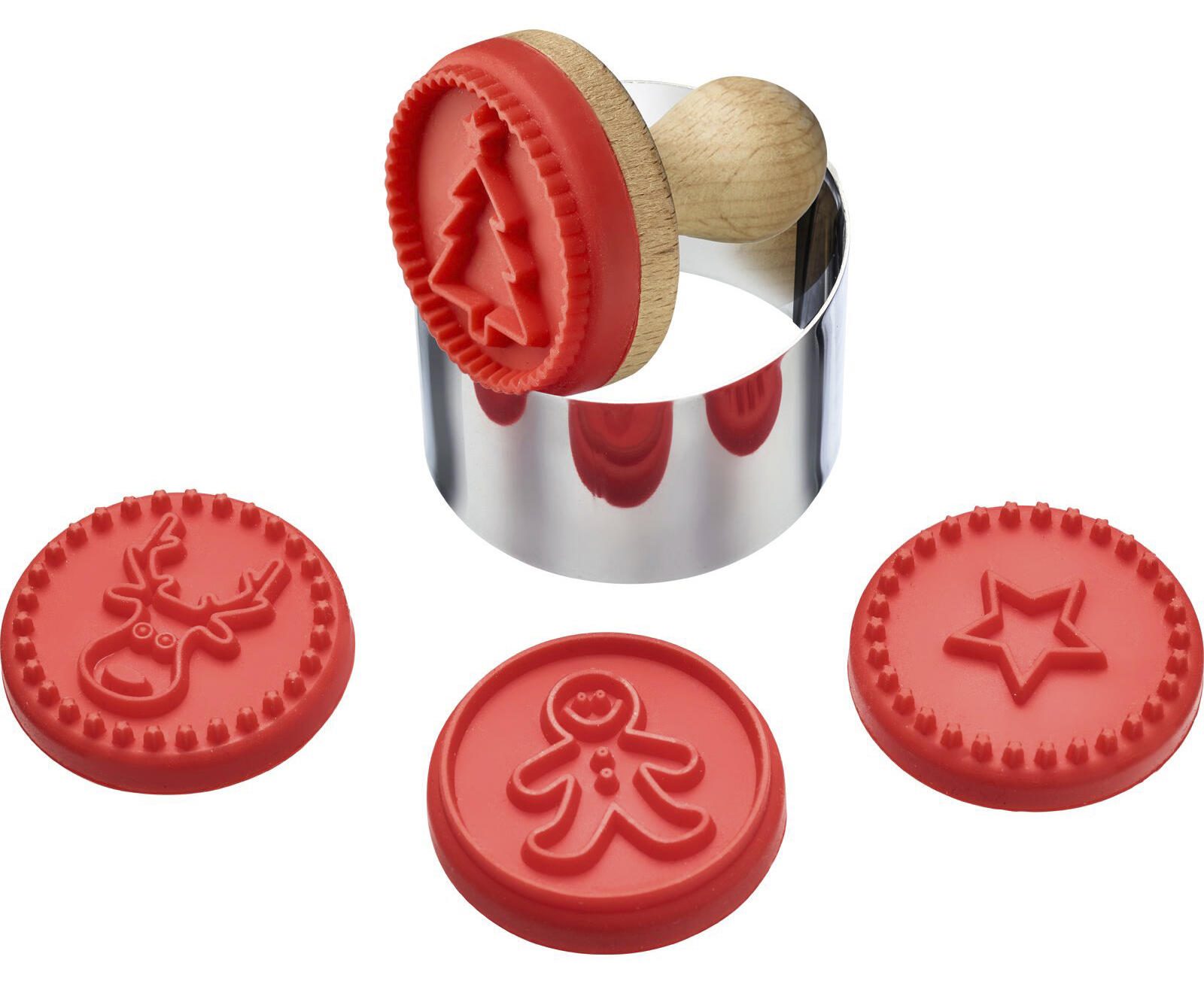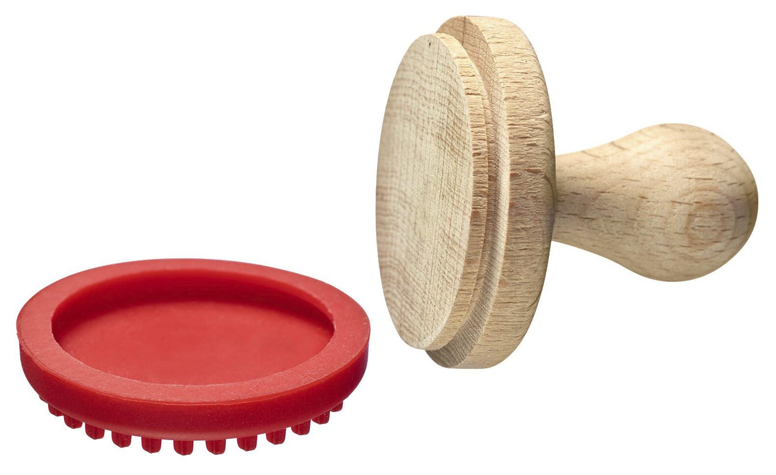 • Lieferung inkl.: Holzstempel, Silikon-Aufsätze, Edelstahlring