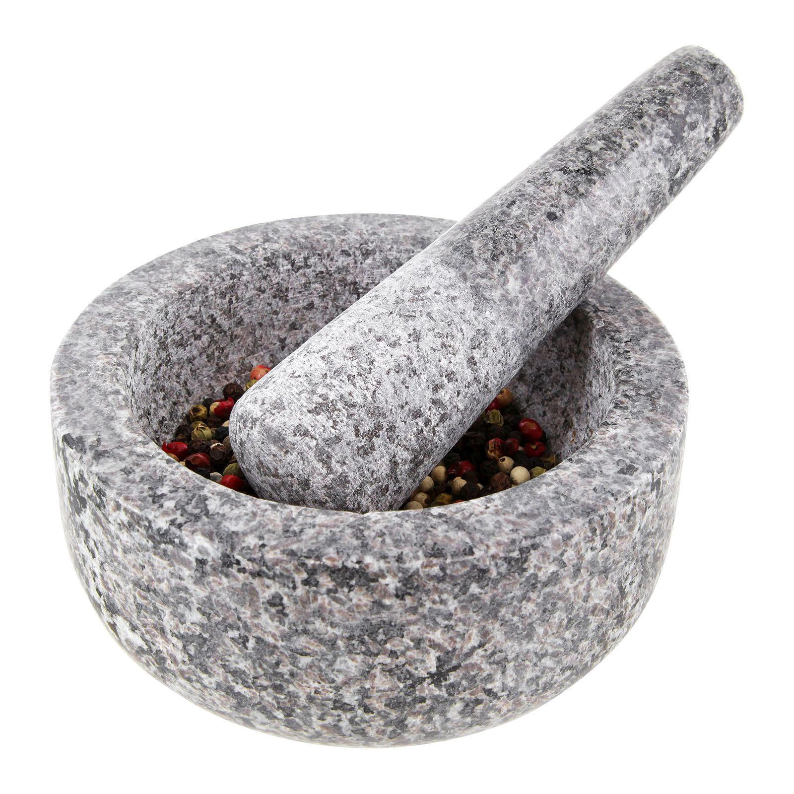 Der WESTMARK Granit Mörser mit einem Durchmesser von 13.1 cm in elegantem Grau ist das ideale Küchenwerkzeug für alle, die frische Gewürze und Kräuter schätzen. Hergestellt aus hochwertigem Granit, bietet dieser Mörser nicht nur eine ansprechende Optik, sondern auch eine hervorragende Funktionalität. Das robuste Material sorgt dafür, dass die Aromen der Zutaten optimal freigesetzt werden, während die schwere Bauweise eine stabile Handhabung gewährleistet. Mit diesem Mörser kannst du deine Gewürze und Kräuter mühelos zerstoßen und mahlen, um die intensivsten Geschmäcker in deinen Gerichten zu entfalten. Die raue Innenseite des Mörsers ermöglicht ein effektives Zerkleinern, während die glatte Außenseite die Reinigung zum Kinderspiel macht. Egal, ob du frische Kräuter für deine Soßen oder Gewürze für deine Marinaden zubereiten möchtest, der WESTMARK Granit Mörser ist ein unverzichtbares Utensil in jeder modernen Küche. Die schlichte graue Farbgebung macht ihn zu einem stilvollen Accessoire, das sich harmonisch in jede Kücheneinrichtung einfügt. Darüber hinaus ist der Mörser nicht nur für den privaten Gebrauch geeignet, sondern auch ideal für professionelle Küchen, in denen Qualität und Funktionalität an erster Stelle stehen. Entdecke die Vorzüge des WESTMARK Granit Mörsers und bringe deine Kochkünste auf ein neues Level. Mit diesem hochwertigen Küchenhelfer wird das Zerkleinern von Gewürzen und Kräutern zu einem Erlebnis, das du nicht mehr missen möchtest.Technische Daten