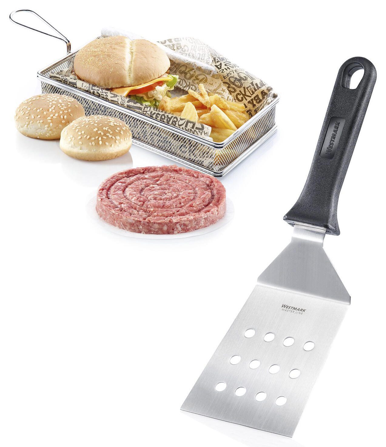 Dank des silberfarbenen Designs aus Edelstahl fügt sich der Pfannenwender elegant in jede Küchenausstattung ein und verbindet Funktionalität mit ansprechender Optik. Dieses vielseitige Küchenwerkzeug aus dem Hause WESTMARK ist ideal für alle, die Wert auf Qualität und praktische Details legen.