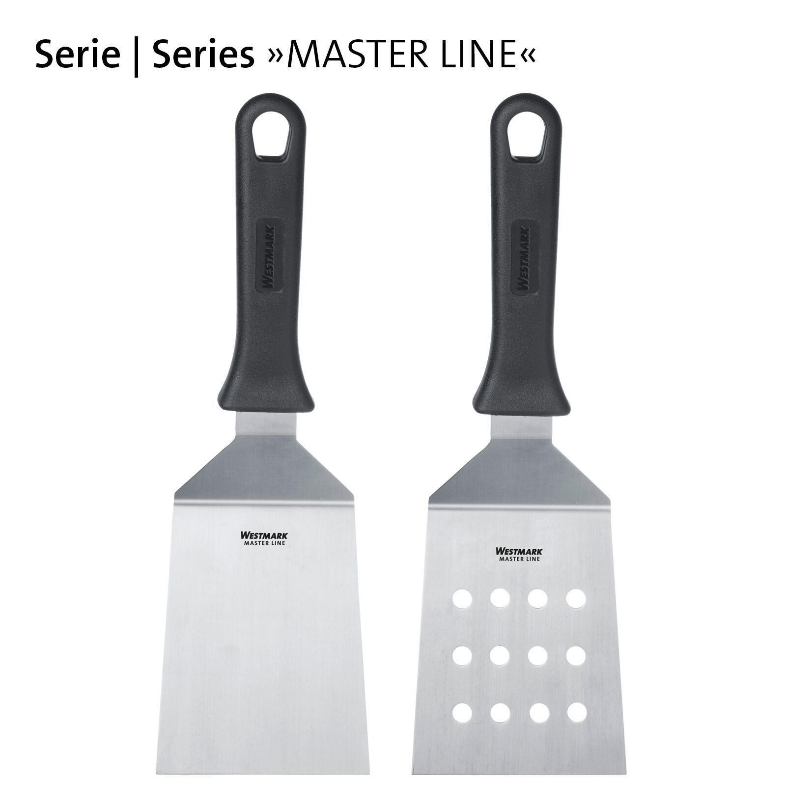 Der WESTMARK Pfannenwender aus der Master Line Serie ist ein unverzichtbares Küchenutensil, das durch seine hochwertige Verarbeitung und durchdachte Gestaltung überzeugt. Gefertigt aus robustem Edelstahl und kombiniert mit einem ergonomischen Kunststoffgriff, bietet dieser Pfannenwender eine langlebige und komfortable Handhabung. Die Länge von 29 cm sorgt für einen sicheren Abstand zur heißen Pfanne, während die spitze Form das Wenden und Herausheben von Speisen erleichtert.