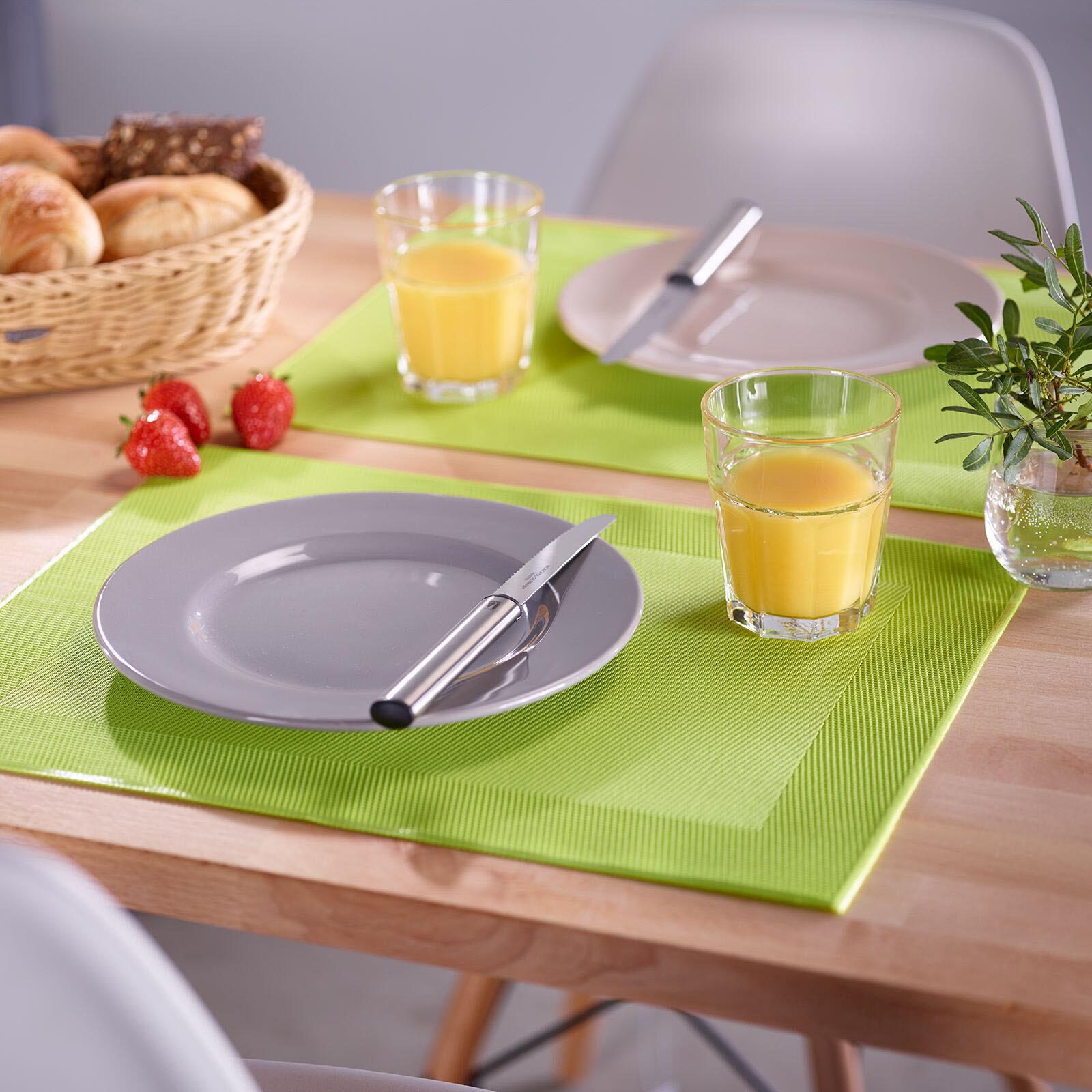 Die WESTMARK Home Platzsets in der ansprechenden Farbe lime sind eine stilvolle Ergänzung für jeden Esstisch. Mit einer Breite von 32 cm und einer Länge von 42 cm bieten diese Platzsets ausreichend Fläche, um deine Tischdekoration zu unterstützen und gleichzeitig einen Schutz für deine Tischoberfläche zu gewährleisten. Hergestellt aus hochwertigem Kunststoff, sind sie nicht nur langlebig, sondern auch pflegeleicht und ideal für den täglichen Gebrauch. Die lebendige lime-Farbe bringt frischen Schwung in dein Esszimmer und lässt sich hervorragend mit verschiedenen Tischdecken und Geschirr kombinieren. Ob für besondere Anlässe oder den alltäglichen Gebrauch, diese Platzsets setzen farbliche Akzente und tragen zu einer angenehmen Atmosphäre bei. Sie sind perfekt geeignet für Familienessen, Partys oder einfach für einen gemütlichen Abend zu Hause. Ein weiterer Vorteil der WESTMARK Platzsets ist ihre praktische Handhabung. Sie sind nicht waschbar, was bedeutet, dass du sie einfach abwischen kannst, um sie sauber zu halten. Dies spart Zeit und Mühe bei der Reinigung und sorgt dafür, dass du mehr Zeit für die schönen Dinge im Leben hast. In einer Packung sind vier Platzsets enthalten, sodass du genug für deine gesamte Familie oder Gäste hast. Mit den WESTMARK Home Platzsets bringst du nicht nur Farbe auf den Tisch, sondern auch Funktionalität und Stil. Sie sind eine hervorragende Wahl für alle, die Wert auf ein ansprechendes Ambiente legen, ohne dabei auf praktische Aspekte zu verzichten.Technische Daten