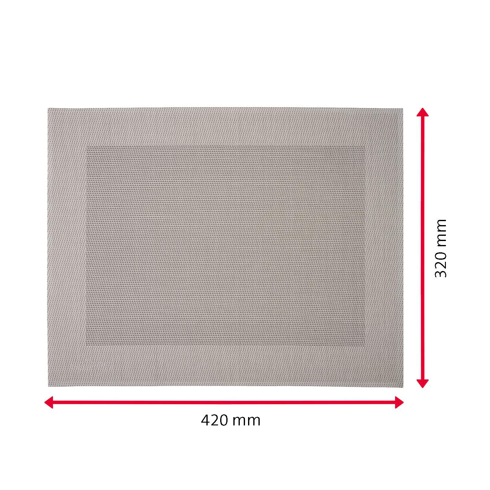Die WESTMARK Home Platzsets mit den Maßen 32 cm x 42 cm sind die perfekte Ergänzung für jeden Esstisch. Hergestellt aus hochwertigem Kunststoff, bieten diese Platzsets nicht nur eine ansprechende Optik, sondern auch eine praktische Lösung für den Alltag. Die elegante taupe Farbe fügt sich harmonisch in verschiedene Einrichtungsstile ein und verleiht deinem Tisch eine stilvolle Note. Mit einem Set von vier Platzsets bist du gut ausgestattet, um Familie und Freunde zu bewirten. Die großzügigen Abmessungen von 32 cm in der Breite und 42 cm in der Länge bieten ausreichend Platz für Teller, Besteck und Gläser, sodass dein Tisch immer ordentlich und einladend aussieht. Die Platzsets schützen die Tischoberfläche vor Kratzern und Flecken, was besonders in einem lebhaften Haushalt von Vorteil ist. Ob beim Frühstück, Mittagessen oder Abendessen, die WESTMARK Platzsets sind vielseitig einsetzbar und erleichtern die Tischdekoration. Sie sind nicht waschbar, was bedeutet, dass du sie einfach mit einem feuchten Tuch abwischen kannst, um sie sauber zu halten. Dies macht sie besonders pflegeleicht und ideal für den täglichen Gebrauch. Die WESTMARK Platzsets der Serie Home sind nicht nur funktional, sondern auch ein stilvolles Accessoire für dein Zuhause. Verleihe deinem Esstisch mit diesen eleganten Platzsets einen Hauch von Klasse und genieße die Vorteile eines gepflegten und gut organisierten Tischgedecks.