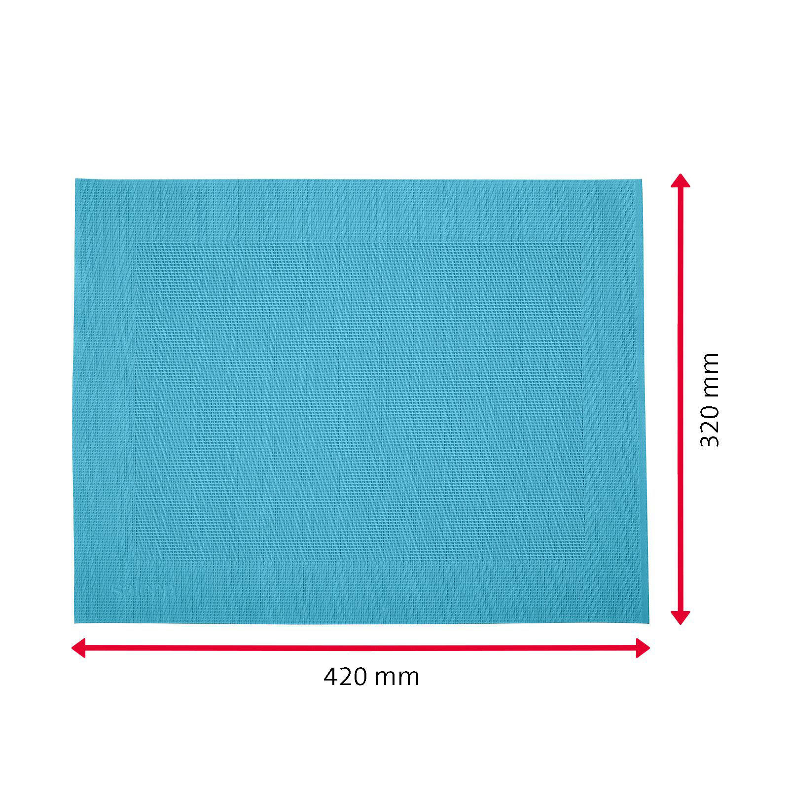 Die WESTMARK Home Platzsets sind die perfekte Ergänzung für deinen Esstisch. Mit einer Breite von 32 cm und einer Länge von 42 cm bieten sie ausreichend Platz, um Geschirr, Besteck und Gläser stilvoll zu präsentieren. Hergestellt aus hochwertigem Kunststoff, zeichnen sich die Platzsets durch ihre Langlebigkeit und Widerstandsfähigkeit aus. Der ansprechende Farbton in Türkis bringt frischen Wind in dein Zuhause und sorgt für eine einladende Atmosphäre bei jedem Essen. Die Platzsets sind nicht nur funktional, sondern auch ein echter Blickfang. Sie schützen deinen Tisch vor Kratzern und Flecken, während sie gleichzeitig einen modernen Akzent setzen. Ob beim Frühstück, Mittagessen oder Abendessen – die WESTMARK Home Platzsets sind vielseitig einsetzbar und passen zu verschiedenen Einrichtungsstilen. Mit einem Pack von vier Sets hast du ausreichend Material, um Familie und Freunde stilvoll zu bewirten. Obwohl die Platzsets nicht waschbar sind, lassen sie sich leicht mit einem feuchten Tuch abwischen, sodass sie immer sauber und ansprechend bleiben. Die WESTMARK Home Platzsets kombinieren Funktionalität mit ansprechendem Design und sind somit eine ideale Wahl für alle, die Wert auf Qualität und Stil legen. Verleihe deinem Esstisch das gewisse Etwas mit diesen eleganten Platzsets und genieße jede Mahlzeit in einem ansprechenden Ambiente.