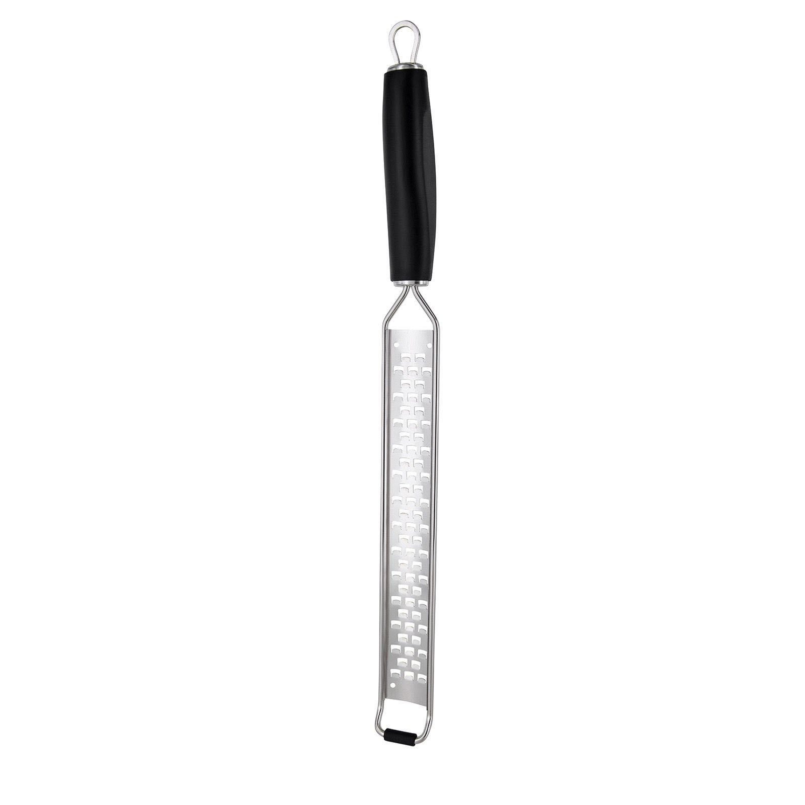 Das Modell Technicus-Pro besticht durch seine erstklassige Verarbeitung und Langlebigkeit. Die 40 cm lange Reibe ermöglicht ein müheloses Zerkleinern und Reiben von Zutaten. Dank des schwarzen Farbtons und des hochwertigen Edelstahls fügt sich die Reibe harmonisch in jede Kücheneinrichtung ein.