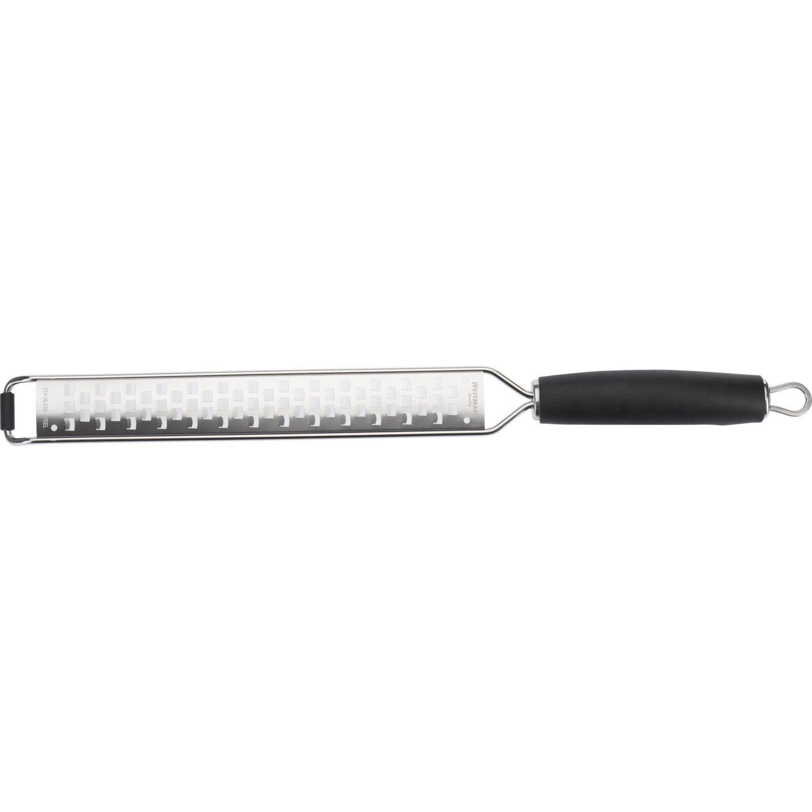 Die WESTMARK Reibe Technicus-Pro ist die perfekte Ergänzung für deine Küche. Mit grober Ausführung und hochwertigem Edelstahl-Material in elegantem Schwarz ist diese Handreibe ein unverzichtbares Utensil für jeden Kochliebhaber.