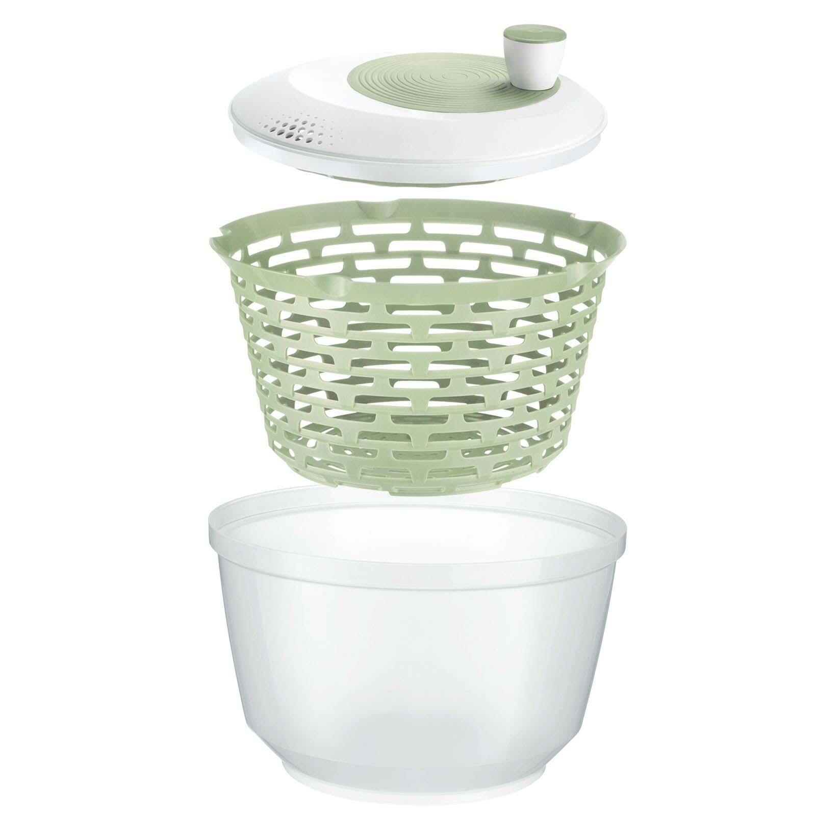 Die WESTMARK Spinderella Salatschleuder in einem frischen hellgrünen Farbton ist der ideale Küchenhelfer für alle, die gesunde Salate lieben. Mit einem großzügigen Fassungsvermögen von 4,4 Litern bietet sie ausreichend Platz, um auch größere Mengen an frischen Zutaten schnell und effizient zu trocknen. Das innovative Design ermöglicht es dir, deinen Salat nach dem Waschen im Handumdrehen von überschüssigem Wasser zu befreien, was nicht nur die Frische erhält, sondern auch das Geschmackserlebnis verbessert. Die Salatschleuder zeichnet sich durch ihre rutschfeste Unterseite aus, die für einen stabilen Stand während des Schleudervorgangs sorgt. So kannst du dich ganz auf die Zubereitung deiner Speisen konzentrieren, ohne dir Sorgen um ein Verrutschen machen zu müssen. Die Schüttöffnung ermöglicht ein einfaches Entleeren des Wassers, ohne dass du den Deckel abnehmen musst, was die Handhabung zusätzlich erleichtert. Hergestellt aus hochwertigem Polypropylen ist die WESTMARK Spinderella nicht nur langlebig, sondern auch spülmaschinengeeignet, was die Reinigung zum Kinderspiel macht. Die Kombination aus Funktionalität und ansprechendem Design macht diese Salatschleuder zu einem Must-Have in jeder modernen Küche. Mit der WESTMARK Spinderella Salatschleuder bringst du nicht nur Farbe in deine Küchenausstattung, sondern auch Effizienz in deine Salatzubereitung. Genieße knackige, frische Salate ohne großen Aufwand und erlebe, wie einfach gesunde Ernährung sein kann.Technische Daten