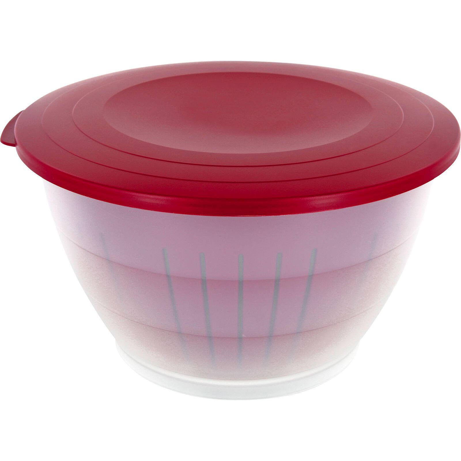 Das WESTMARK Olympia Schüssel-Set ist die perfekte Ergänzung für jede Küche. Mit einem ansprechenden Design in transparent/rot bietet dieses Set nicht nur Funktionalität, sondern auch eine moderne Optik, die in jedem Haushalt gut zur Geltung kommt. Die Schüsseln sind in drei verschiedenen Größen mit einem Fassungsvermögen von 0,6 l, 1,3 l und 4,4 l erhältlich, sodass du für jede Zubereitung die passende Schüssel zur Hand hast. Die praktischen Eigenschaften des Sets machen es besonders benutzerfreundlich. Jede Schüssel ist mit einem Deckel ausgestattet, der dafür sorgt, dass deine Speisen frisch bleiben und sich problemlos aufbewahren lassen. Zudem sind die Schüsseln spülmaschinengeeignet, was die Reinigung nach dem Kochen erheblich erleichtert. Du kannst sie einfach in die Spülmaschine geben und hast mehr Zeit für die schönen Dinge im Leben. Hergestellt aus hochwertigem Kunststoff, sind die Schüsseln nicht nur leicht, sondern auch robust und langlebig. Das Material sorgt dafür, dass die Schüsseln auch bei häufigem Gebrauch ihre Form und Farbe behalten. Die transparente Ausführung ermöglicht es dir, den Inhalt auf einen Blick zu erkennen, während die roten Akzente einen frischen Farbtupfer in deine Küche bringen. Ob für Salate, Teige oder andere kulinarische Kreationen, das WESTMARK Olympia Schüssel-Set ist vielseitig einsetzbar und ein unverzichtbarer Helfer in der Küche. Mit diesem Set bist du bestens ausgestattet, um deine Koch- und Backkünste in vollem Umfang auszuleben.Technische Daten