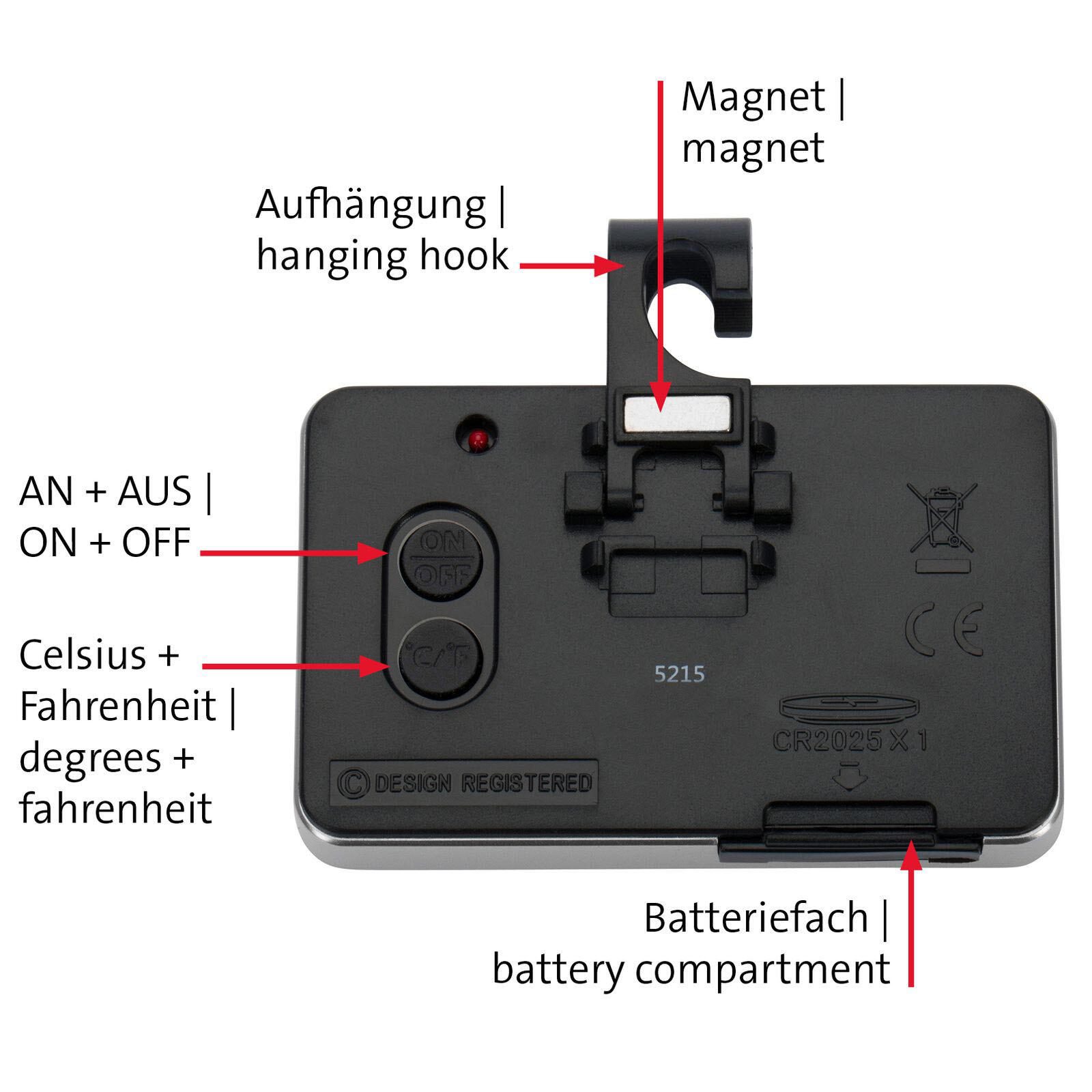Der schicke schwarz/silber Farbton fügt sich harmonisch in das Design deines Kühlschranks ein, während die hochwertigen Materialien Langlebigkeit und Zuverlässigkeit garantieren. Angetrieben wird das Thermometer von einer handelsüblichen CR2025-Knopfzelle, die eine lange Nutzungsdauer ermöglicht.