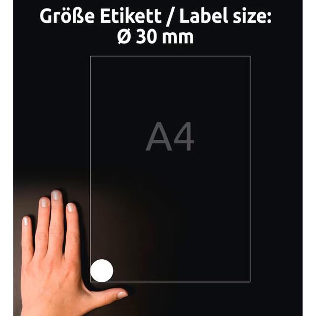 - Etikettenmaß (BxH): 30,0 x 30,0 mm