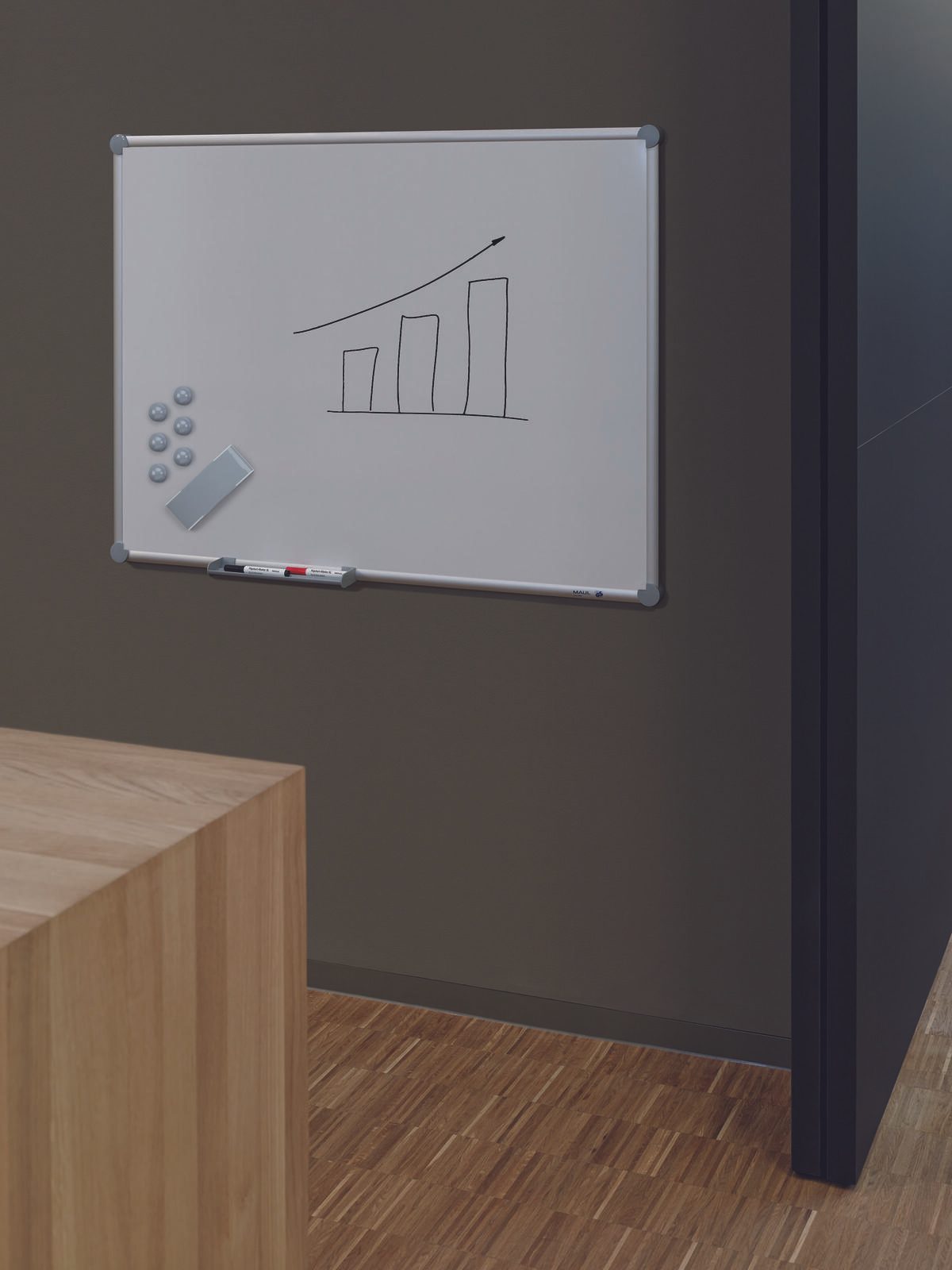 Das Whiteboard der Serie 2000 MAULpro wird von dem renommierten Hersteller MAUL hergestellt, der für qualitativ hochwertige Produkte bekannt ist. Die verdeckte Wandmontage sorgt für eine elegante Optik, während der Aluminiumrahmen in Grau eine stilvolle Ergänzung darstellt.