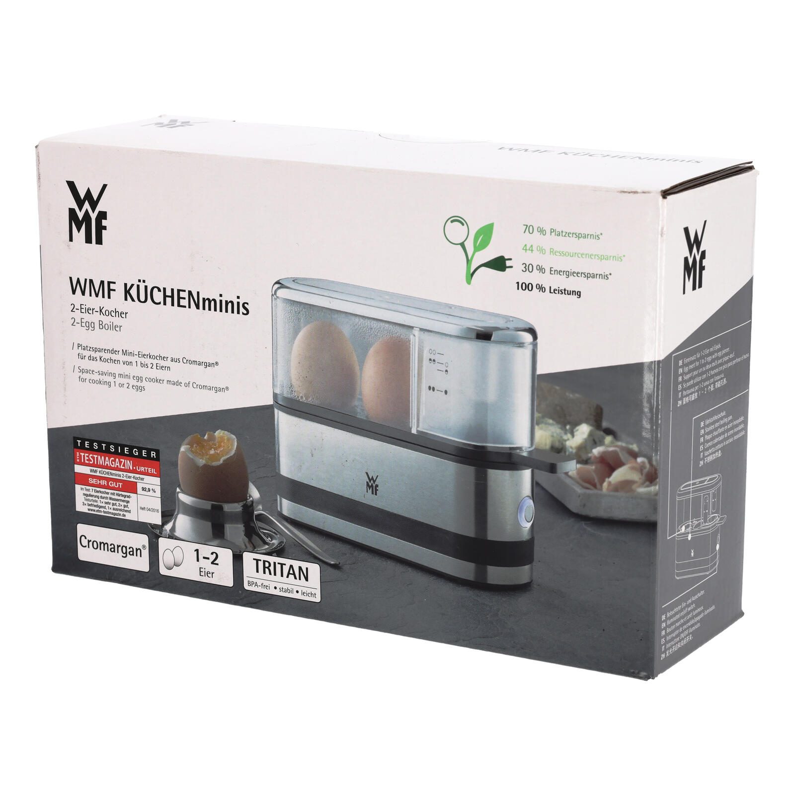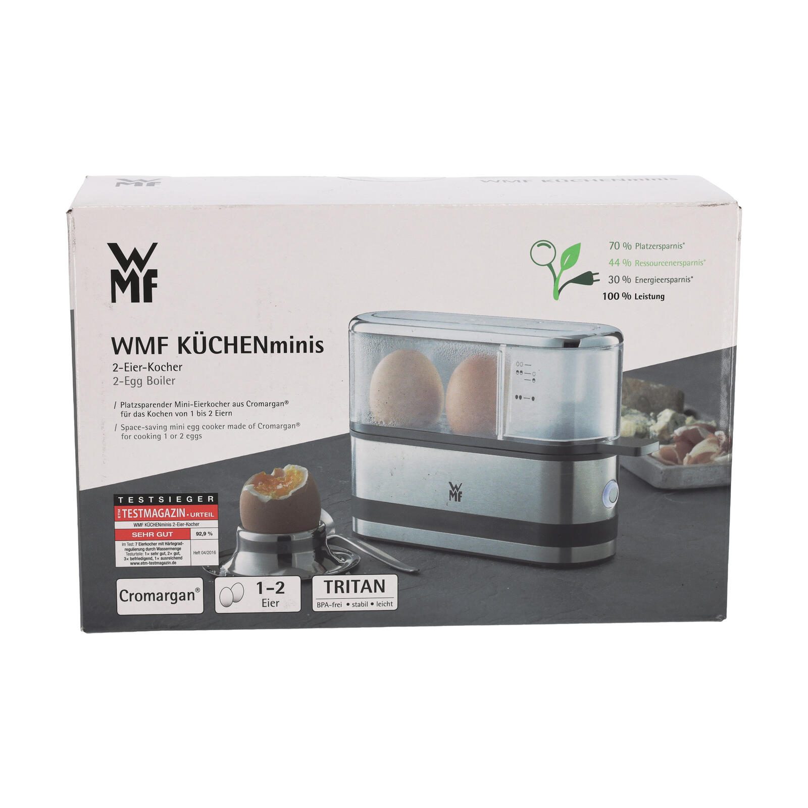 Der WMF KÜCHENminis Eierkocher ist die perfekte Lösung für alle, die Eier schnell und einfach zubereiten möchten. Mit einem eleganten silbernen Design und der hochwertigen Verarbeitung aus Cromargan® 18/10 bietet dieser Eierkocher nicht nur Funktionalität, sondern auch einen modernen Look, der in jede Küche passt. Mit einer Leistungsaufnahme von 250 W ermöglicht der Eierkocher eine effiziente Zubereitung von bis zu zwei Eiern gleichzeitig. Egal, ob du weichgekochte, mittelweiche oder hartgekochte Eier bevorzugst, der WMF KÜCHENminis Eierkocher sorgt dafür, dass deine Eier genau nach deinen Wünschen gegart werden. Die einfache Handhabung und die kompakte Bauweise machen ihn zu einem unverzichtbaren Küchenhelfer, besonders für kleinere Haushalte oder Single-Wohnungen. Die Verwendung von Cromargan® 18/10 sorgt nicht nur für eine ansprechende Optik, sondern garantiert auch Langlebigkeit und Pflegeleichtigkeit. Das Material ist rostfrei und spülmaschinengeeignet, was die Reinigung zum Kinderspiel macht. Der Eierkocher ist ideal für den täglichen Gebrauch und ermöglicht dir, in kürzester Zeit ein gesundes Frühstück oder einen Snack zuzubereiten. Mit dem WMF KÜCHENminis Eierkocher bringst du nicht nur Geschmack, sondern auch Stil in deine Küche. Die Kombination aus hochwertigem Material, ansprechendem Design und effizienter Leistung macht dieses Gerät zu einer klugen Wahl für alle Eierliebhaber. Vertraue auf die Qualität von WMF und genieße perfekt gekochte Eier, wann immer du möchtest.Technische Daten