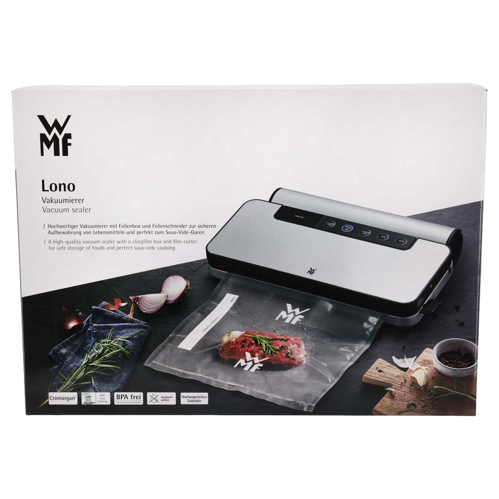 Das WMF Vakuumiergerät Lono 90 W ist die perfekte Lösung für alle, die ihre Lebensmittel frisch halten und die Haltbarkeit verlängern möchten. Mit einer Leistung von 90 W bietet dieses Gerät eine effiziente Vakuumierung, die nicht nur Zeit spart, sondern auch die Qualität deiner Lebensmittel bewahrt. Die elegante silberne Farbgebung fügt sich nahtlos in jede moderne Küche ein und sorgt für einen stilvollen Akzent. Die Vakuumierfunktion ist ideal, um Lebensmittel vor dem Verderben zu schützen. Durch das Entfernen von Luft aus den Verpackungen wird das Wachstum von Bakterien und Schimmel verhindert, was die Lagerung von Fleisch, Gemüse, Obst und sogar trockenen Lebensmitteln erheblich verlängert. Du kannst auch Reste von Mahlzeiten vakuumieren, um sie später zu genießen, ohne dass der Geschmack oder die Textur leidet. Das WMF Vakuumiergerät Lono ist nicht nur leistungsstark, sondern auch benutzerfreundlich. Die einfache Handhabung ermöglicht es dir, in wenigen Schritten perfekte Vakuumierungen durchzuführen. Zudem ist das Gerät kompakt und leicht zu verstauen, was es zu einem praktischen Küchenhelfer macht. Die Kombination aus Funktionalität und ansprechendem Design macht den WMF Vakuumierer zu einem unverzichtbaren Bestandteil deiner Küchenausstattung. Mit dem WMF Vakuumiergerät Lono 90 W investierst du in Qualität und Langlebigkeit. Die Marke WMF steht für hervorragende Verarbeitung und innovative Technik, sodass du dich auf ein Produkt verlassen kannst, das dir lange Freude bereiten wird. Entdecke die Vorteile der Vakuumierung und genieße frische Lebensmittel länger.Technische Daten