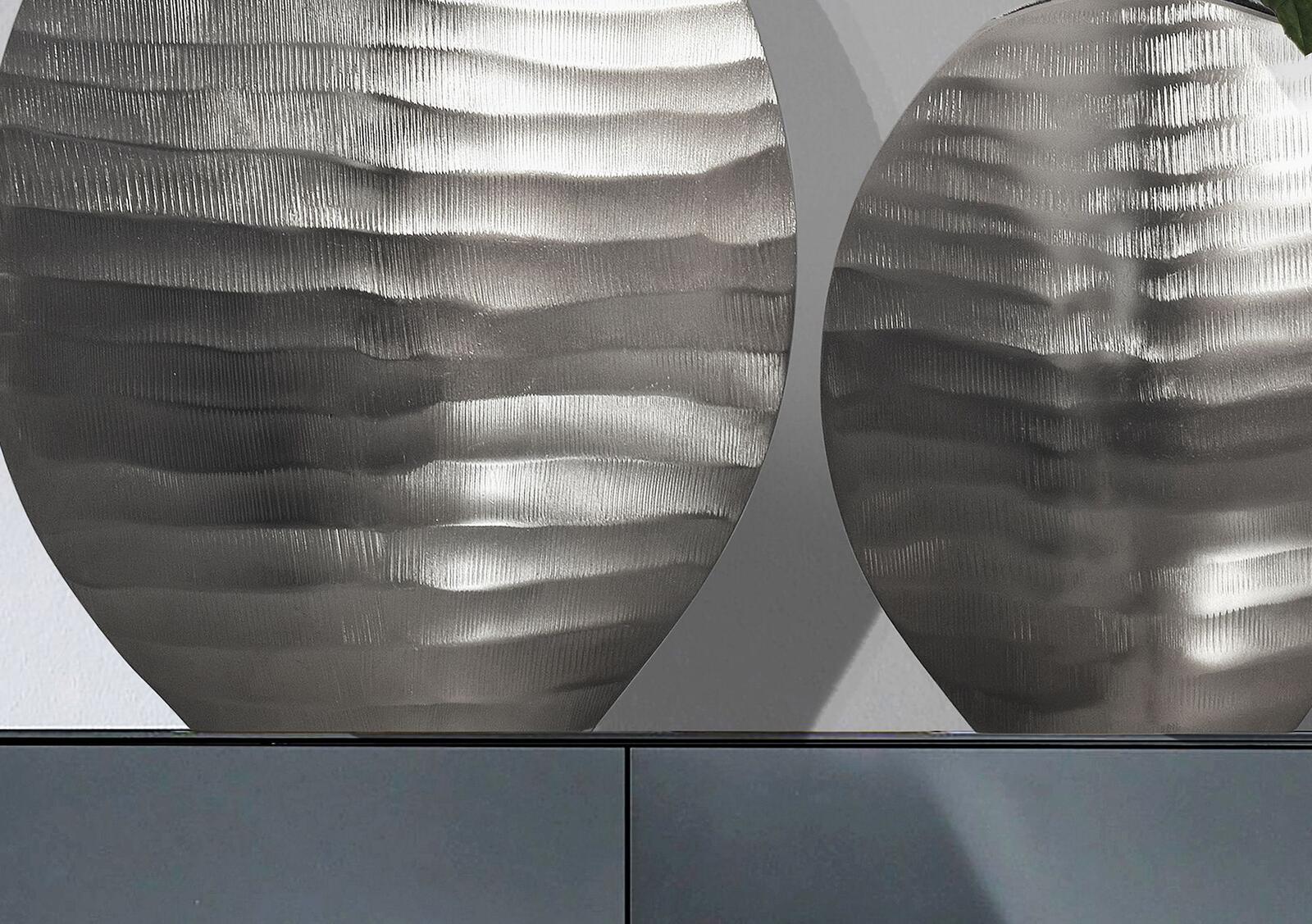 - Beide Dekovasen bestehen aus massivem Aluminium, welches silberfarben lackiert ist.