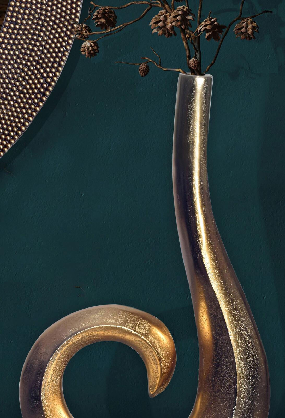 Die WOHNLING WL7.198 Vase S Gold besticht durch ihre elegante, geschwungene Form, die moderne Raffinesse mit zeitloser Ästhetik verbindet. Diese stilvolle Standvase setzt auf jedem Sideboard, Regal oder Esstisch einen besonderen Akzent und verleiht Ihrem Zuhause sofort eine aufregende Atmosphäre. Gefertigt aus massivem Aluminium im Raw-Finish und mit einer goldfarbenen Lackierung versehen, überzeugt sie durch ihre hochwertige Verarbeitung und ihr edles Erscheinungsbild.