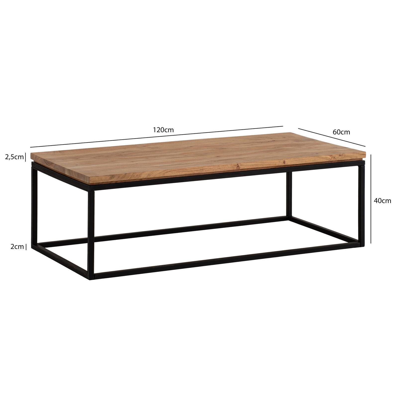 • WOHNLING WL7.309 Couchtisch 120x60x40 cm Akazie Massivholz / Metall