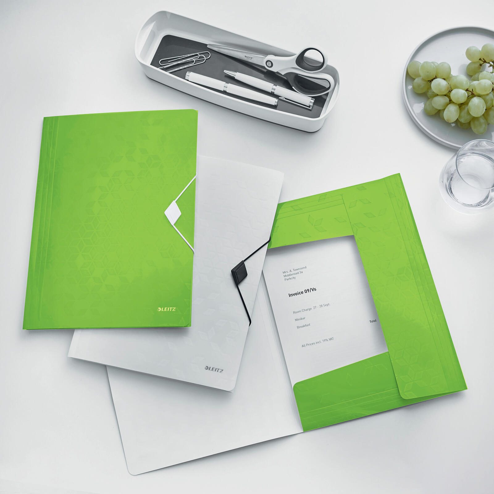 Mit dem LEITZ Eckspanner in Grün kannst du dich auf eine zuverlässige Aufbewahrungslösung verlassen, die deine Dokumente sicher hält und gleichzeitig deinen Arbeitsplatz optisch aufwertet.