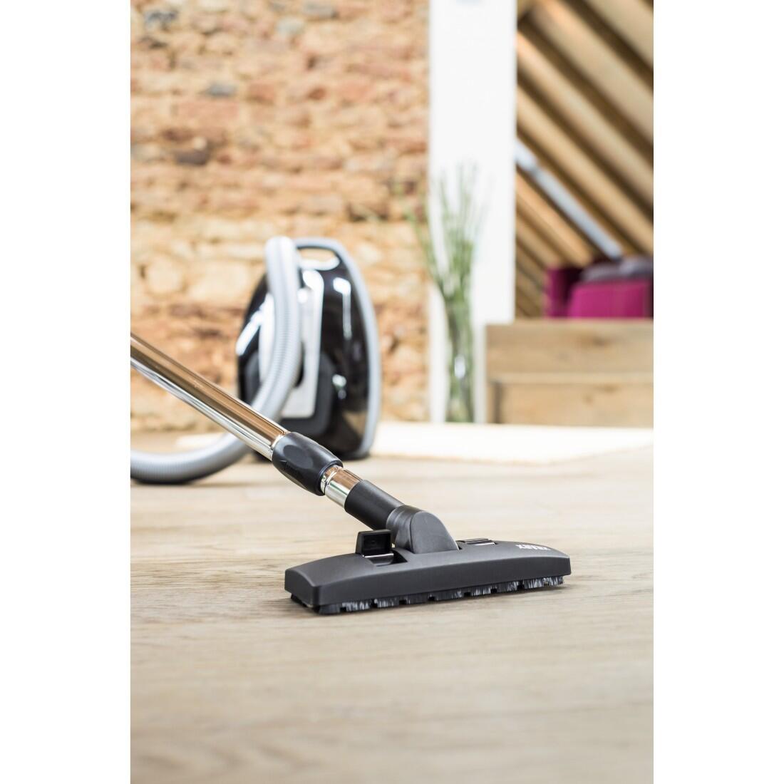 • für Teppich- und Hartböden, doppelter Fadenheber, umlaufende Bürstenleiste, wendig durch Dreh-/Kippgelenk