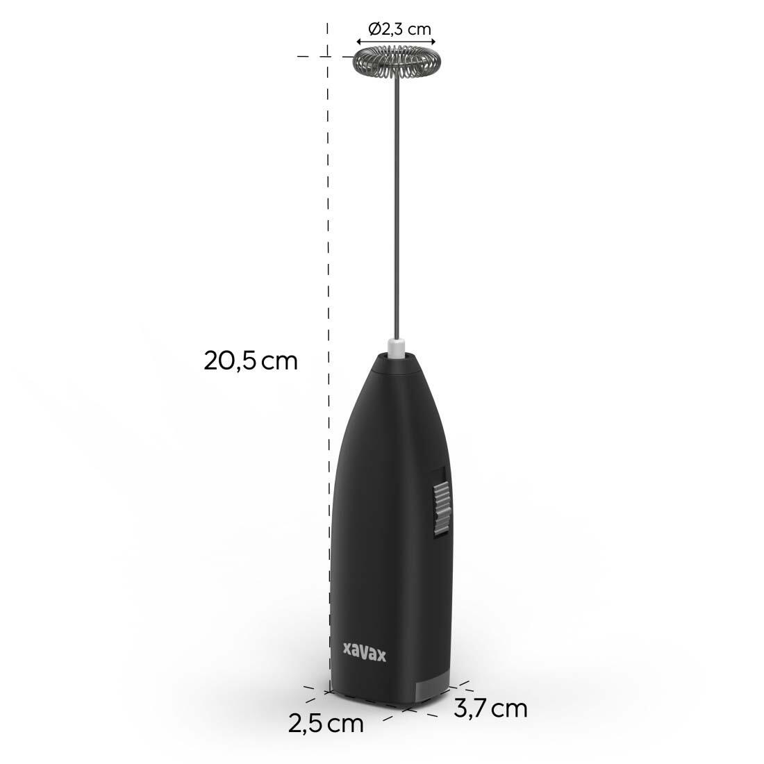 Der xavax® Barista Milchaufschäumer in elegantem Schwarz ist das ideale Küchengerät für alle, die ihren Kaffee mit einer perfekten Schaumkrone verfeinern möchten. Ausgestattet mit einem extra leistungsstarken Motor, ermöglicht dieser Milchaufschäumer eine schnelle und mühelose Zubereitung von cremigem Milchschaum, der deinen Lieblingskaffee oder -tee zu einem wahren Genuss macht. Die griffige Soft-Touch-Oberfläche sorgt nicht nur für ein angenehmes Handgefühl, sondern auch für eine einfache Handhabung. Mit dem manuellen Schieberegler kannst du den Schäumprozess nach deinen Wünschen steuern, ohne einen Knopf gedrückt halten zu müssen. Dies macht die Anwendung besonders komfortabel und benutzerfreundlich, sodass du dich voll und ganz auf das Zubereiten deiner Getränke konzentrieren kannst. Der Milchaufschäumer besteht aus hochwertigem Chrom, was nicht nur für eine ansprechende Optik sorgt, sondern auch die Langlebigkeit des Geräts garantiert. Obwohl der xavax® Barista Milchaufschäumer keine Erhitzungsfunktion bietet, kannst du dennoch kalte oder warme Milch problemlos aufschäumen, um deine Getränke ganz nach deinem Geschmack zu gestalten. Mit dem xavax® Barista Milchaufschäumer schwarz holst du dir ein funktionales und stilvolles Küchengerät in dein Zuhause, das dir hilft, die Kunst des perfekten Milchschaums zu meistern. Egal, ob du ein Kaffeeliebhaber bist oder einfach nur ab und zu einen besonderen Genuss erleben möchtest, dieser Milchaufschäumer wird schnell zu deinem unverzichtbaren Begleiter in der Küche.Technische Daten