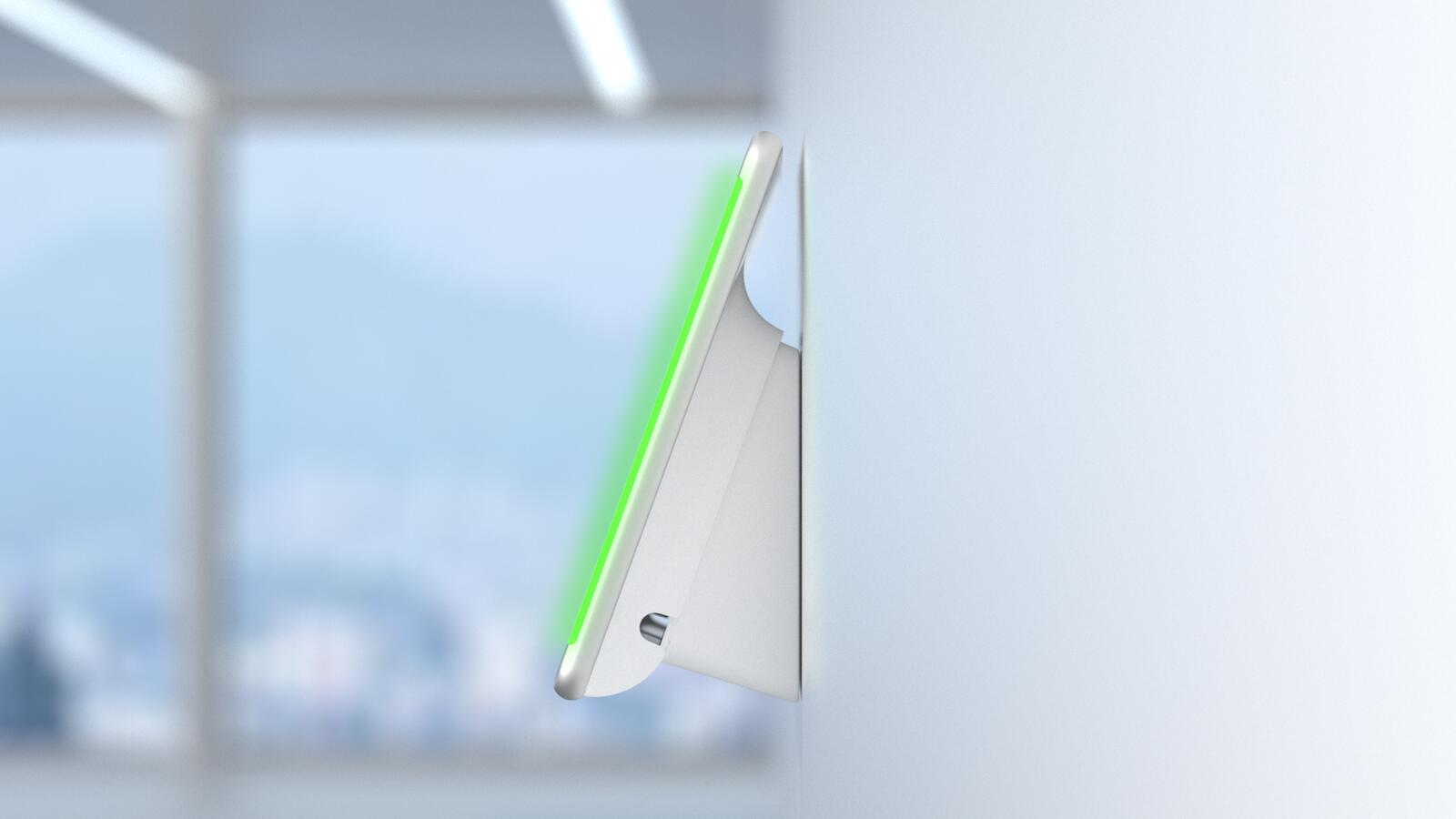 - Seitliche LED-Beleuchtung signalisiert den Raumstatus