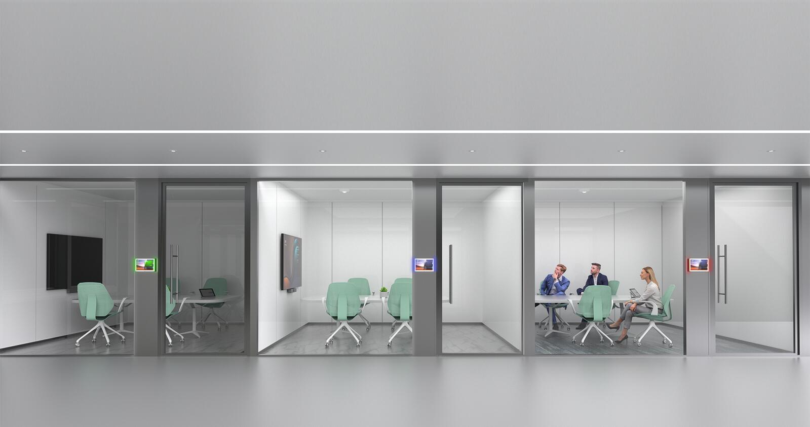 Das Yealink RoomPanel Plus ist ein multifunktionales 10,1-Zoll-Besprechungszimmerpanel, das mit Android 11 läuft und über eine vollständige RGB programmierbarer LED-Hintergrundbeleuchtung verfügt für eine sofort sichtbare Kommunikation des Raumstatus. Es verfügt über Multi-Point-Touch, Gesichtserkennungskamera, integriertes NFC/RFID-Lesegerät, erweiterte Mikrofon-Arrays und Lautsprecher, um den vielfältigen Anforderungen der aktuellen Büroumgebung gerecht zu werden. Das Yealink RoomPanel Plus kann als eigenständiges Interface fungieren, sich mit Sensoren in Besprechungsräumen verbinden und Besprechungsraum-Zeitpläne automatisch aktualisieren, um verschiedene Besprechungsraum-Management-Funktionen bereitzustellen. Ausgestattet mit Powerover-Ethernet und verschiedenen Halterungen kann das Yealink RoomPanel Plus leicht auf jeder Oberfläche montiert werden.