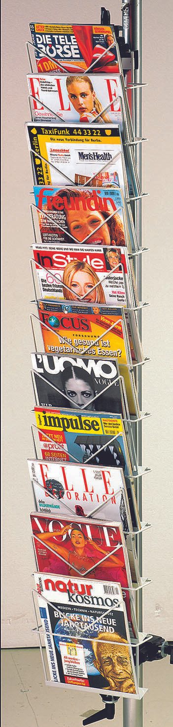Der Kerkmann Wandprospekthalter Zeitschriftenwandhalter in Grau ist ideal für den Innenbereich geeignet. Mit bis zu 11 Fächern bietet er ausreichend Platz für DIN A4 Formate. Die Montage erfolgt mühelos mit bis zu 6 Schrauben. Der Wandprospekthalter besteht aus hochwertigem kunststoffbeschichteten Draht in einem ansprechenden lichtgrauen Farbton.