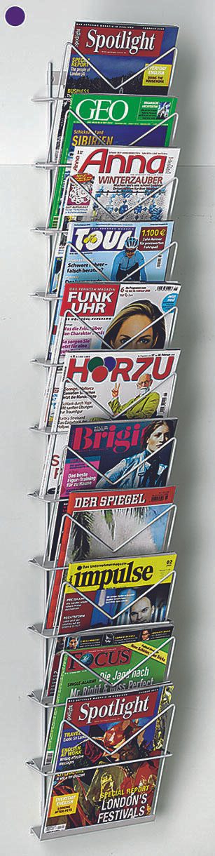 Kerkmann Wandprospekthalter Zeitschriftenwandhalter DIN A4 11-Fach Grau